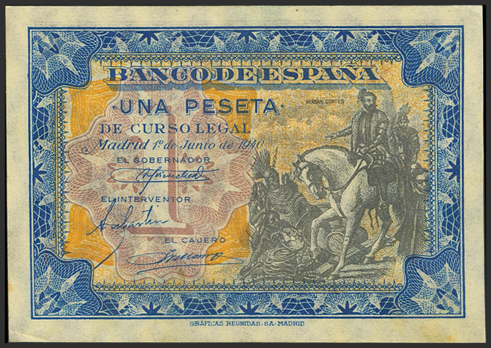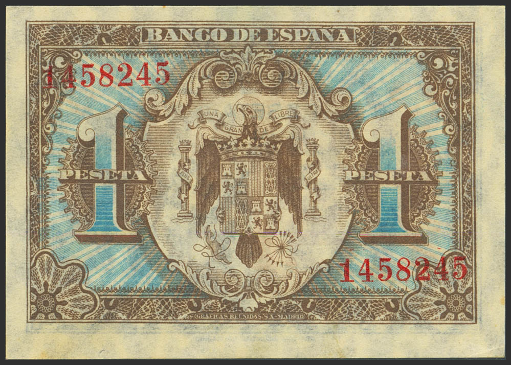 1 Peseta. 1 de Junio de 1940. Sin serie. (Edifil 2023: 441). Apresto original, ligeras sombritas del tiempo. SC-.
