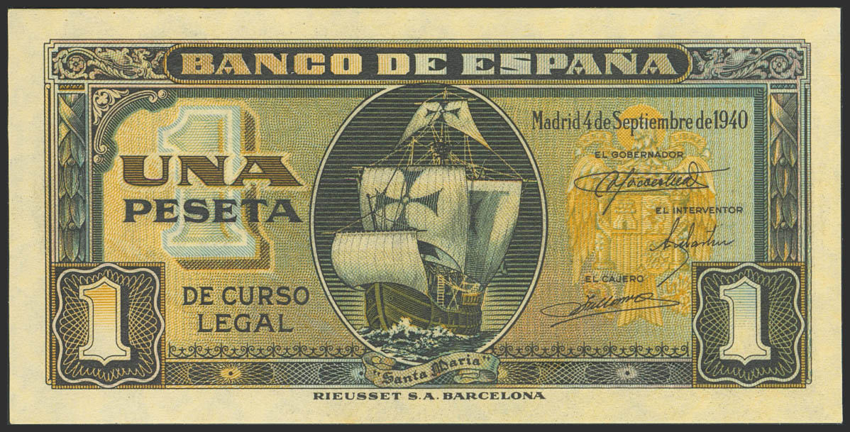 1 Peseta. 4 de Septiembre de 1940. Serie G. (Edifil 2023: 442a). Conserva todo su apresto original. SC.