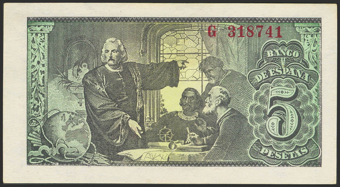 5 Pesetas. 13 de Febrero de 1943. Serie G. (Edifil 2023: 446a). Apresto original, tonalizado. SC-.