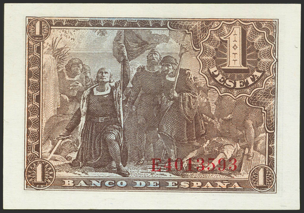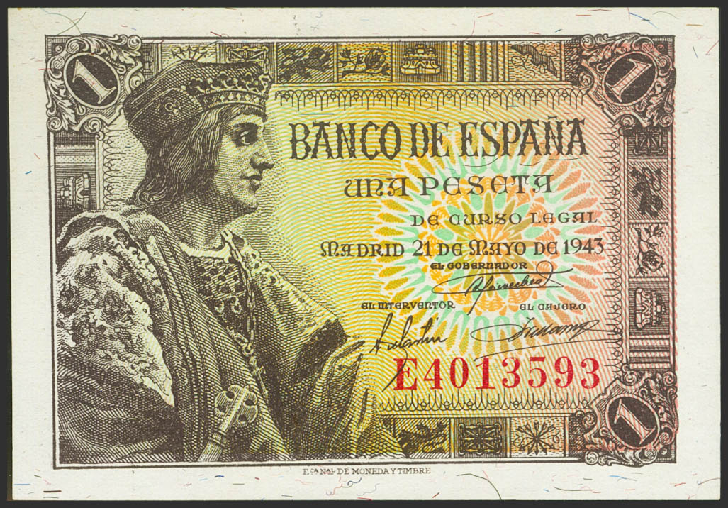 1 Peseta. 21 de Mayo de 1943. Serie E. (Edifil 2021: 447a). Apresto original. SC-.