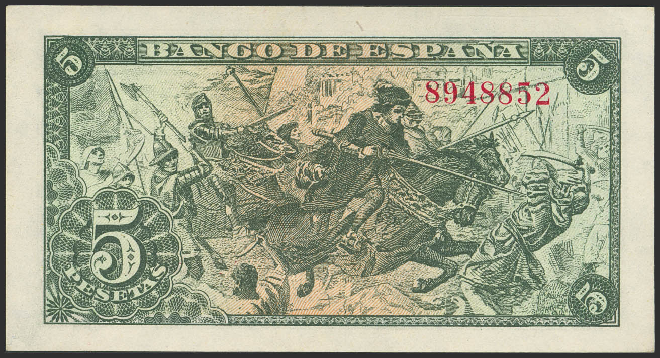 5 Pesetas. 15 de Junio de 1945. Sin serie. (Edifil 2023: 449). Apresto original. SC-.