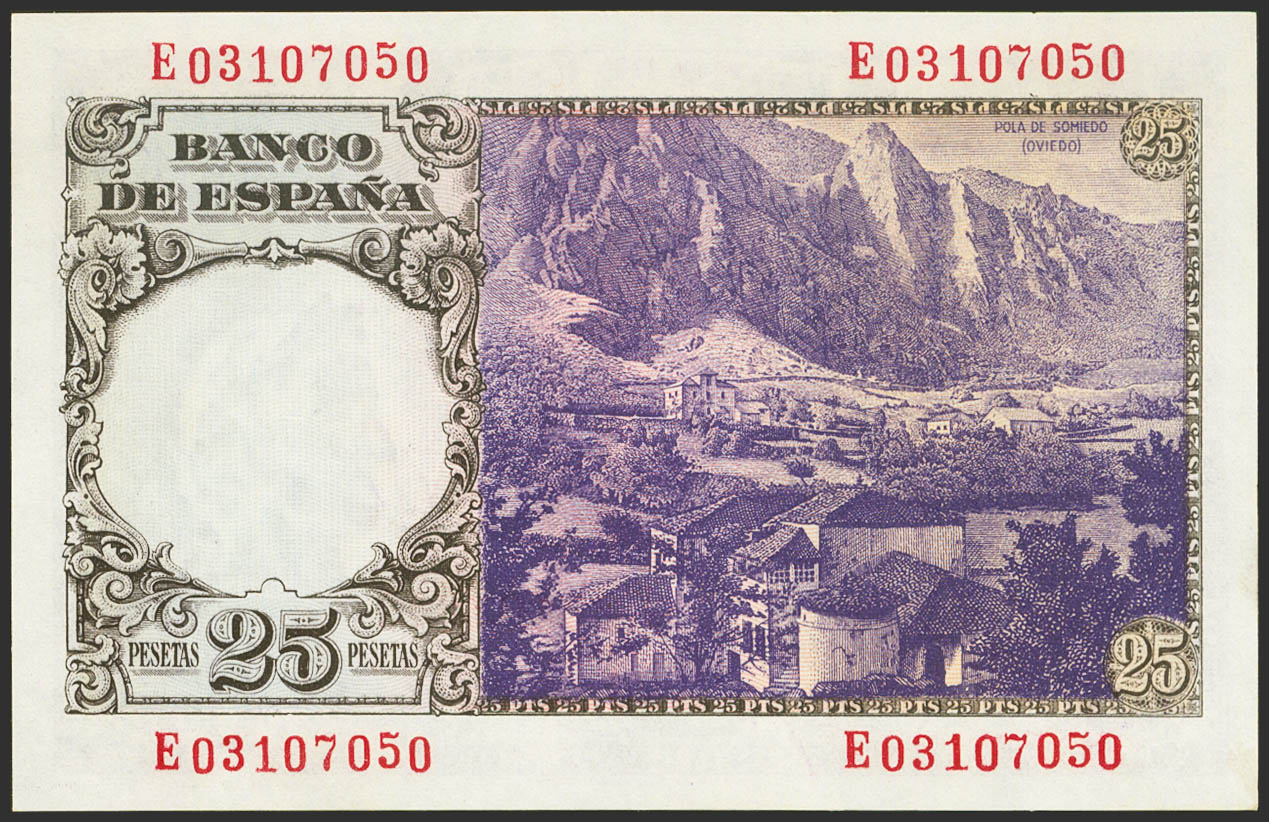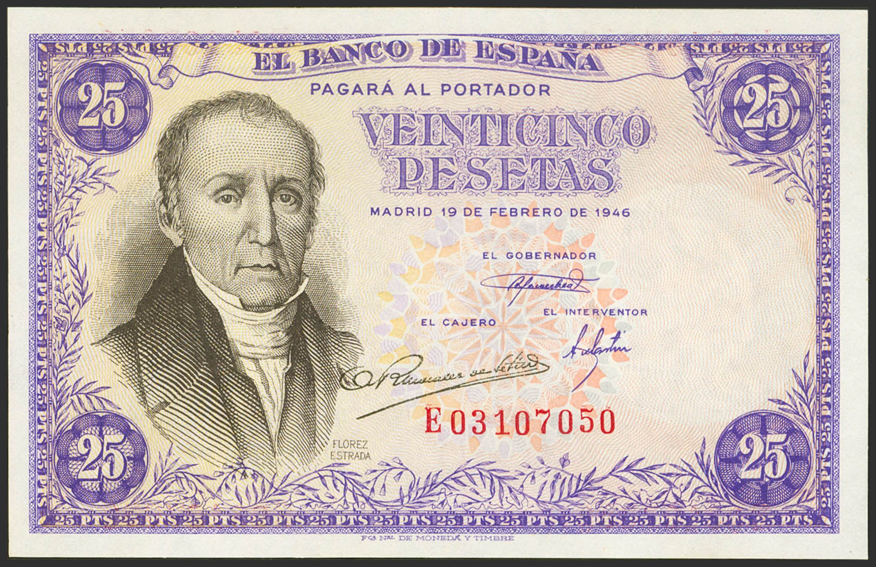 25 Pesetas. 19 de Febrero de 1946. Serie E. (Edifil 2021: 450a). Apresto original. SC-.
