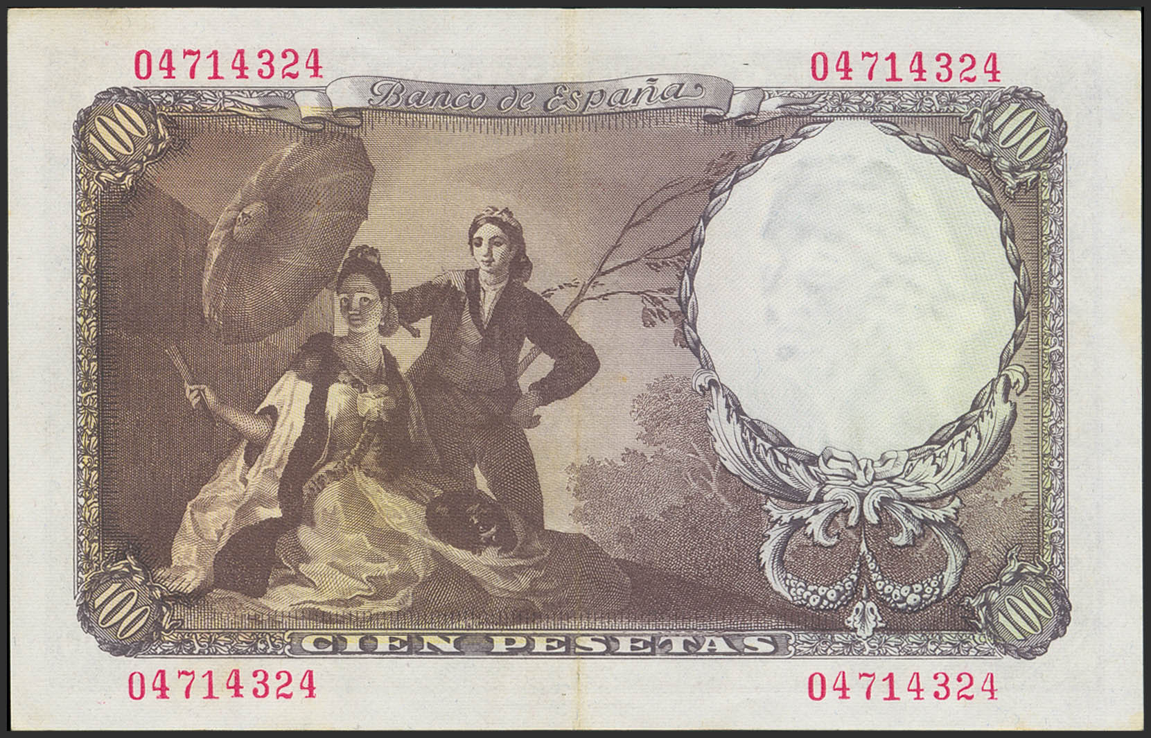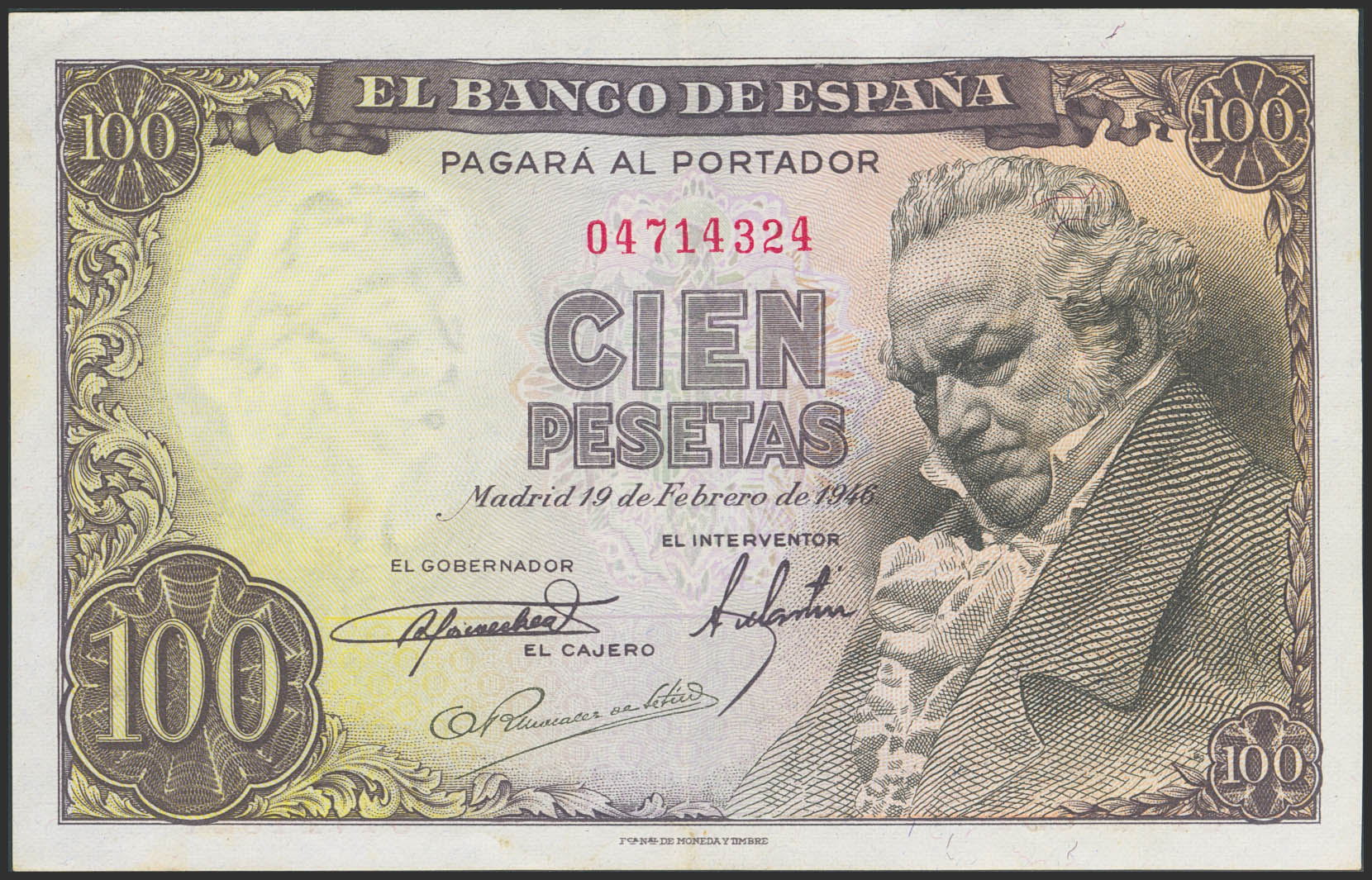 100 Pesetas. 19 de Febrero de 1946. Sin serie. (Edifil 2023: 451). Conserva parte del apresto original. EBC.