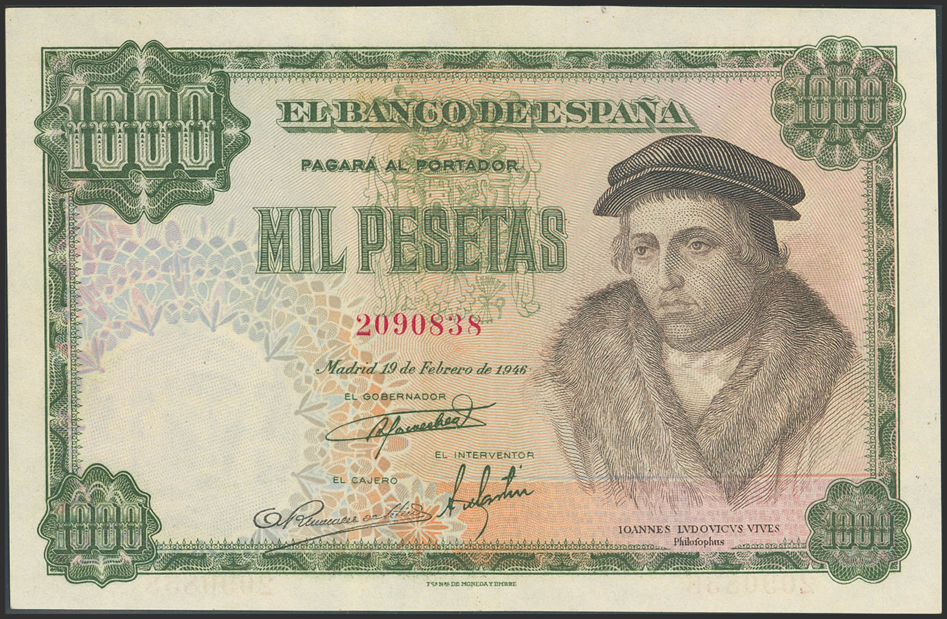 1000 Pesetas. 19 de Febrero de 1946. Sin serie. (Edifil 2023: 453). Apresto original, billete de gran presencia. EBC.