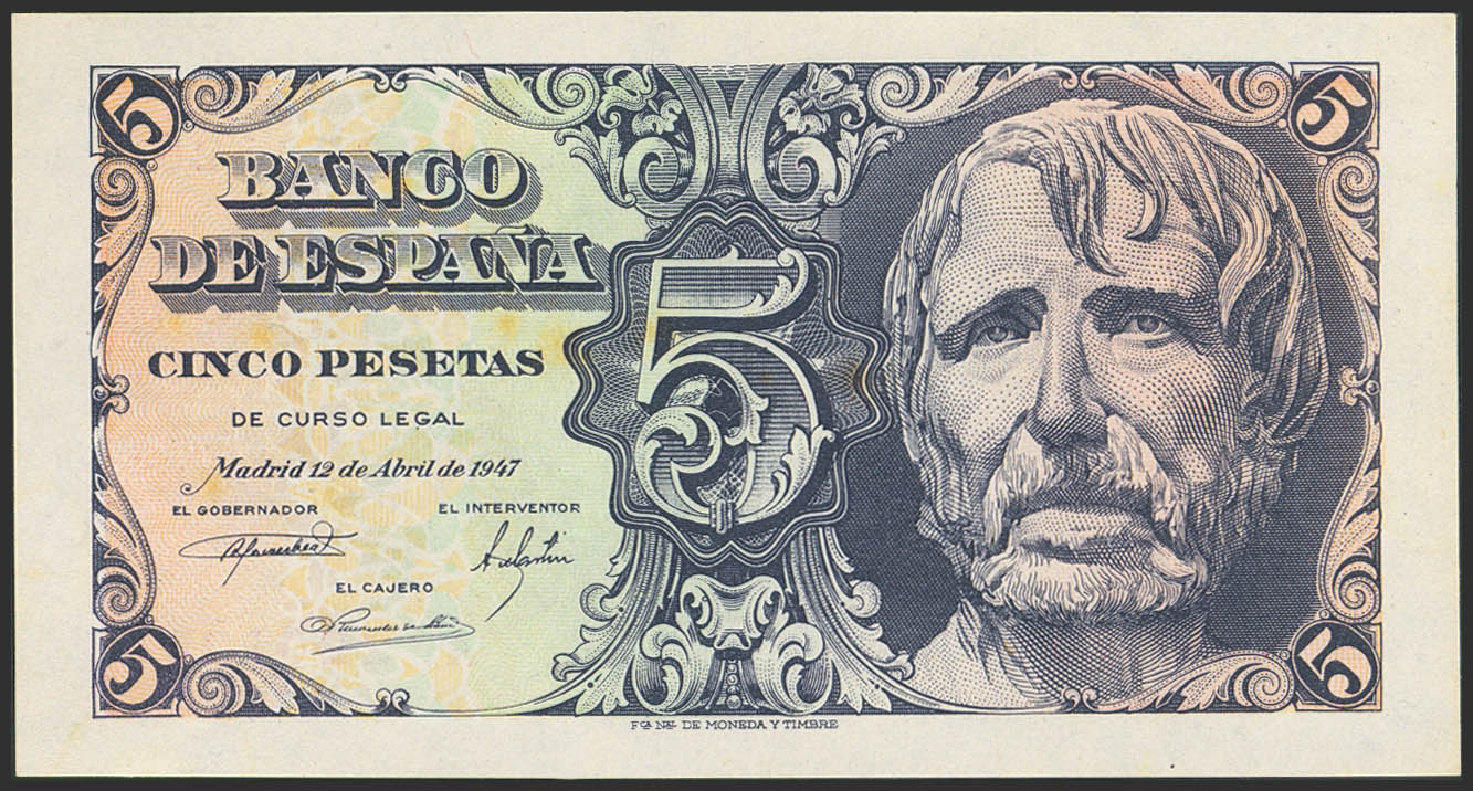 5 Pesetas. 12 de Abril de 1947. Serie A. (Edifil 2023: 454a). Apresto original. SC.