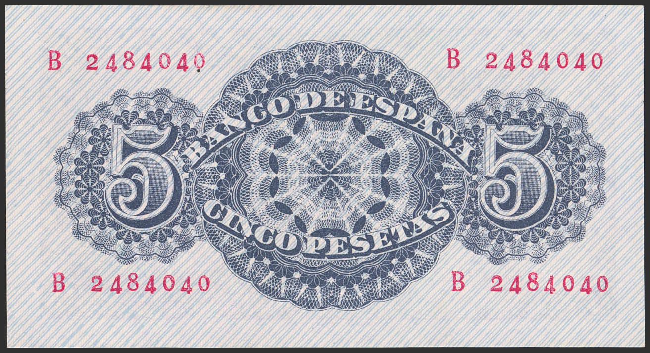 5 Pesetas. 12 de Abril de 1947. Serie B. (Edifil 2023: 454a). Conserva parte del apresto original. SC.