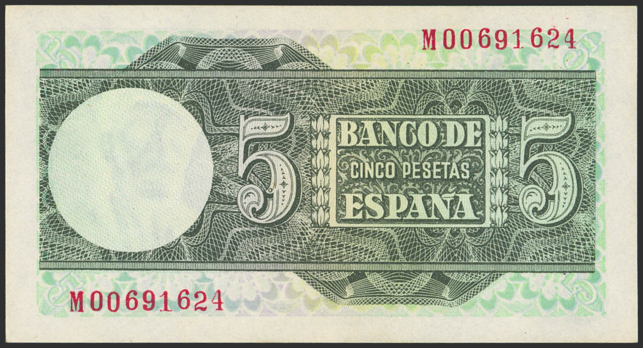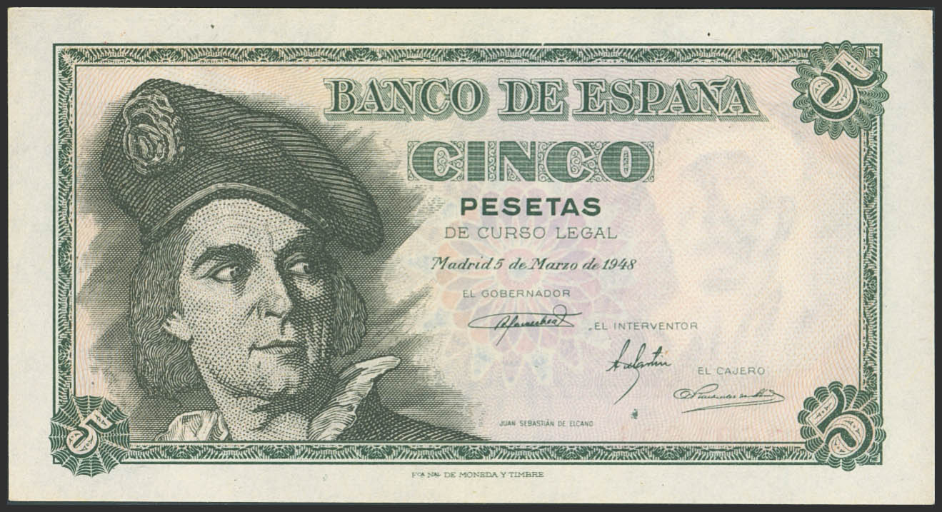 5 Pesetas. 5 de Marzo de 1948. Serie M. (Edifil 2023: 455a). Apresto original. SC.