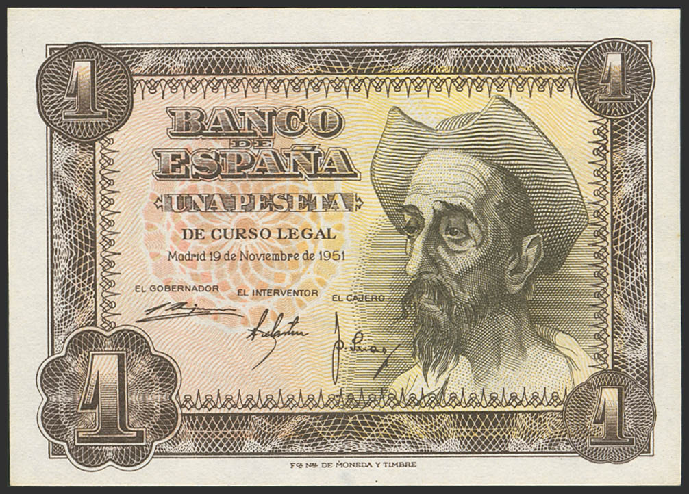 1 Peseta. 19 de Noviembre de 1951. Sin serie. (Edifil 2023: 461). Apresto original. SC.