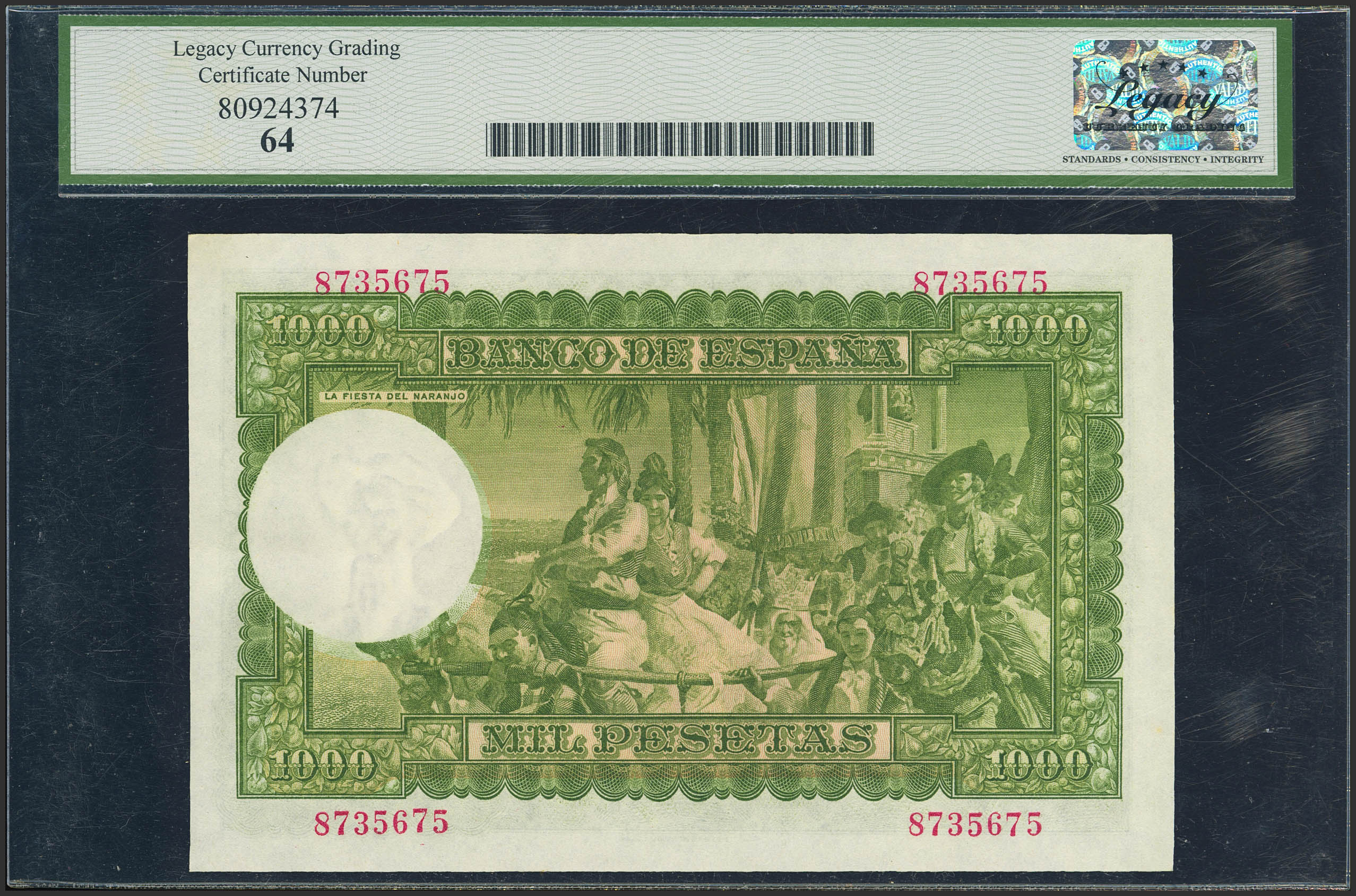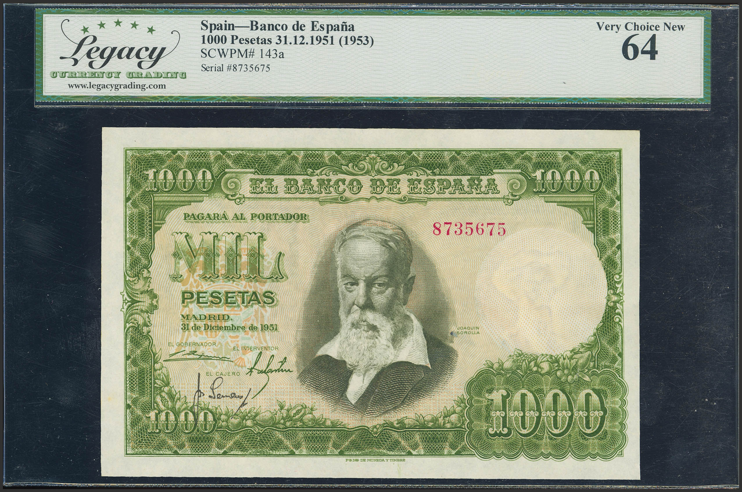 1000 Pesetas. 31 de Diciembre de 1951. Sin serie. (Edifil 2023: 463, Pick: 143a). Apresto original. SC. Encapsulado LEGACY64.