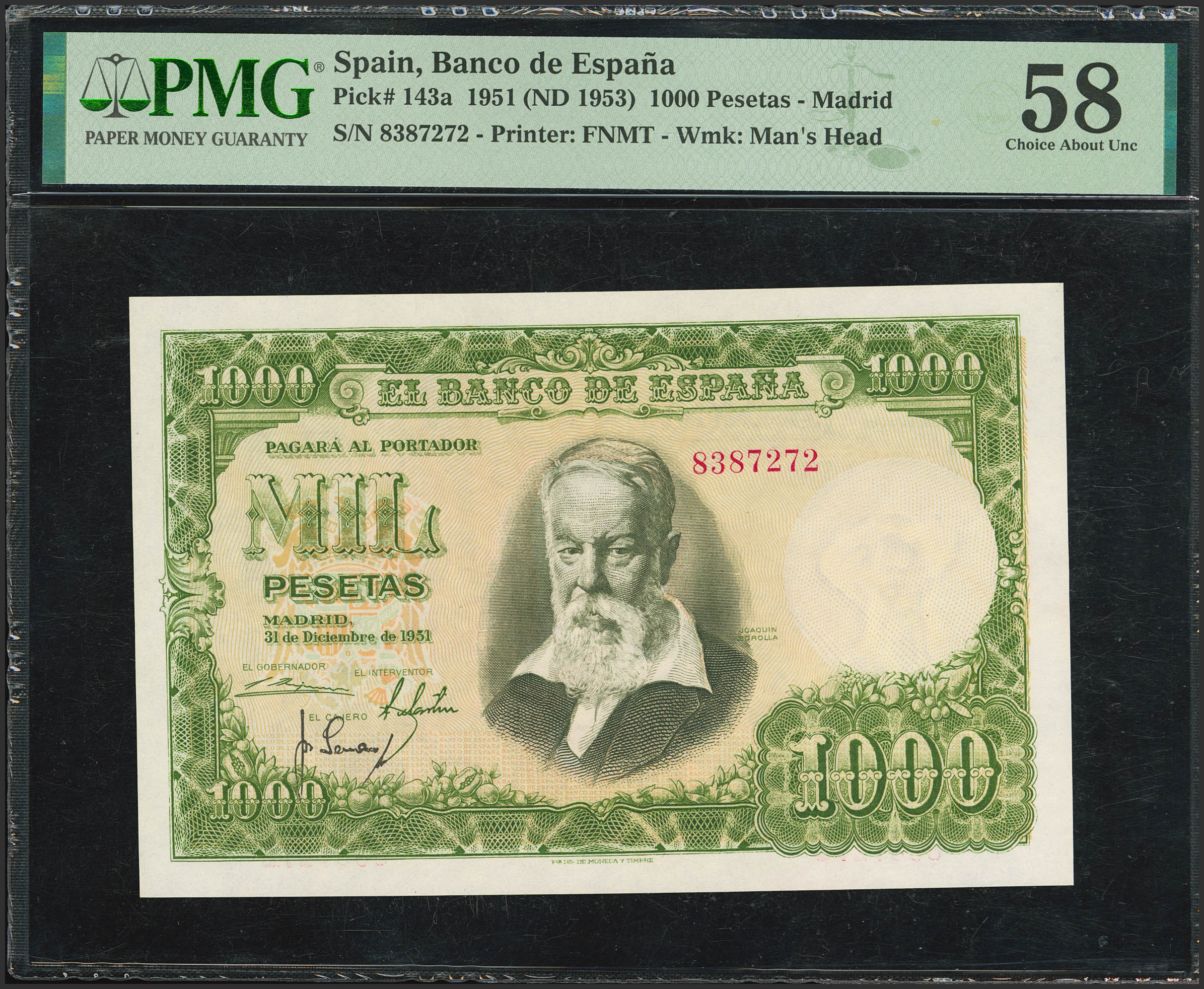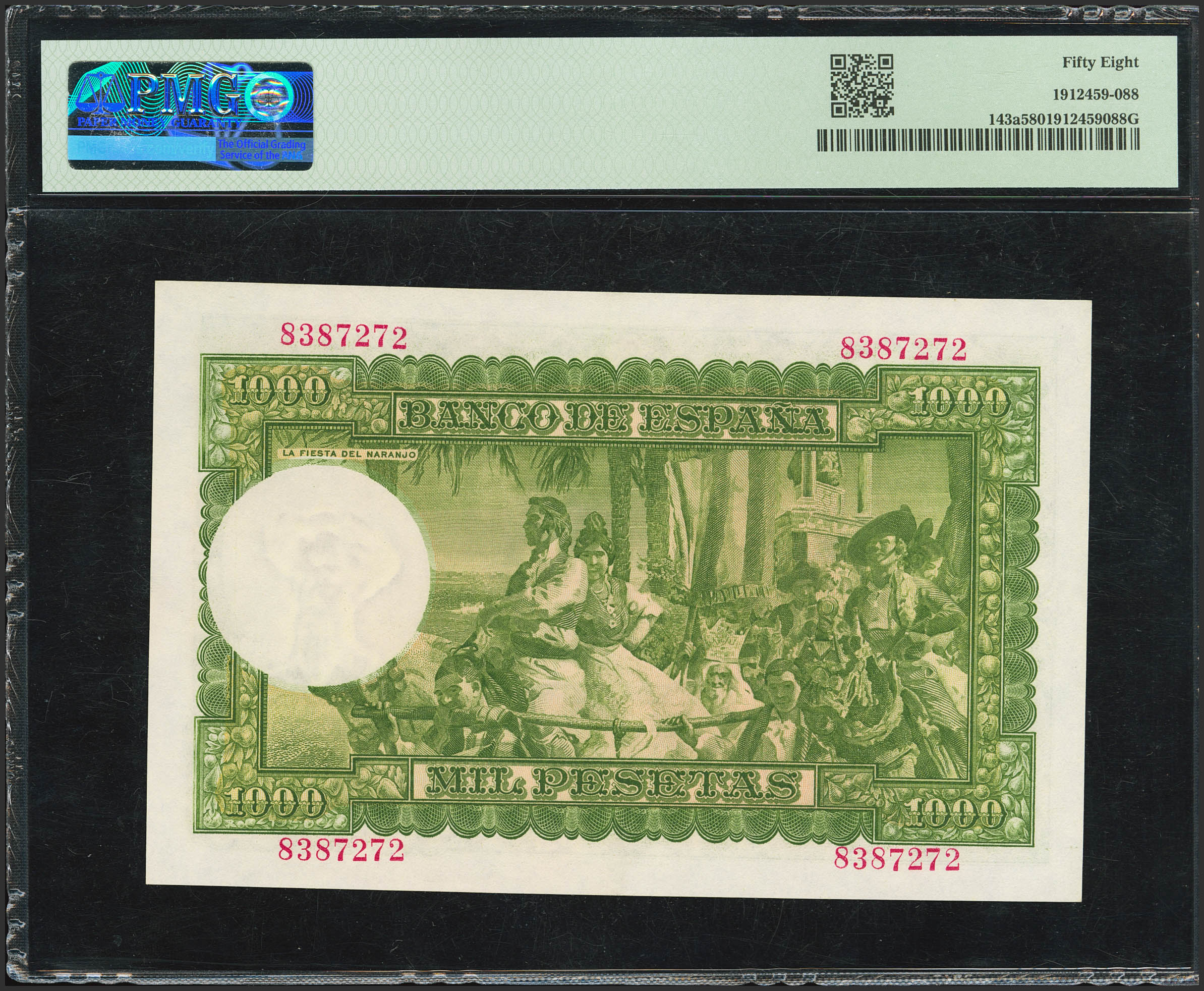 1000 Pesetas. 31 de Diciembre de 1951. Sin serie. (Edifil 2021: 463, Pick: 143a). EBC++. Encapsulado PMG58.