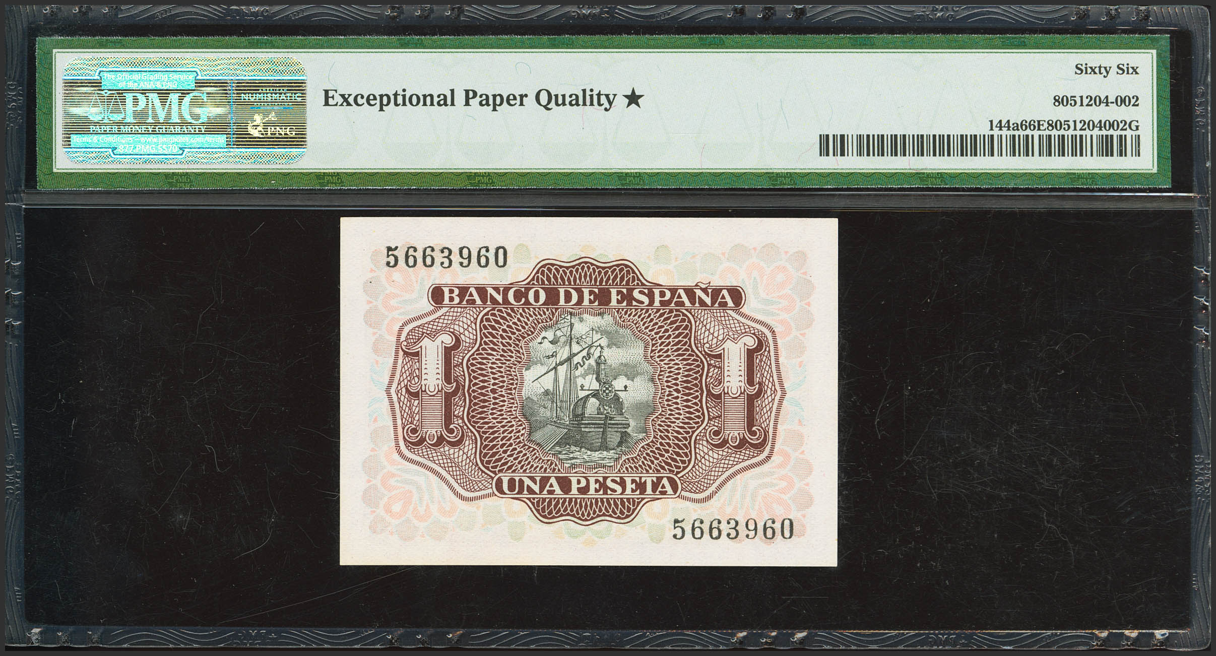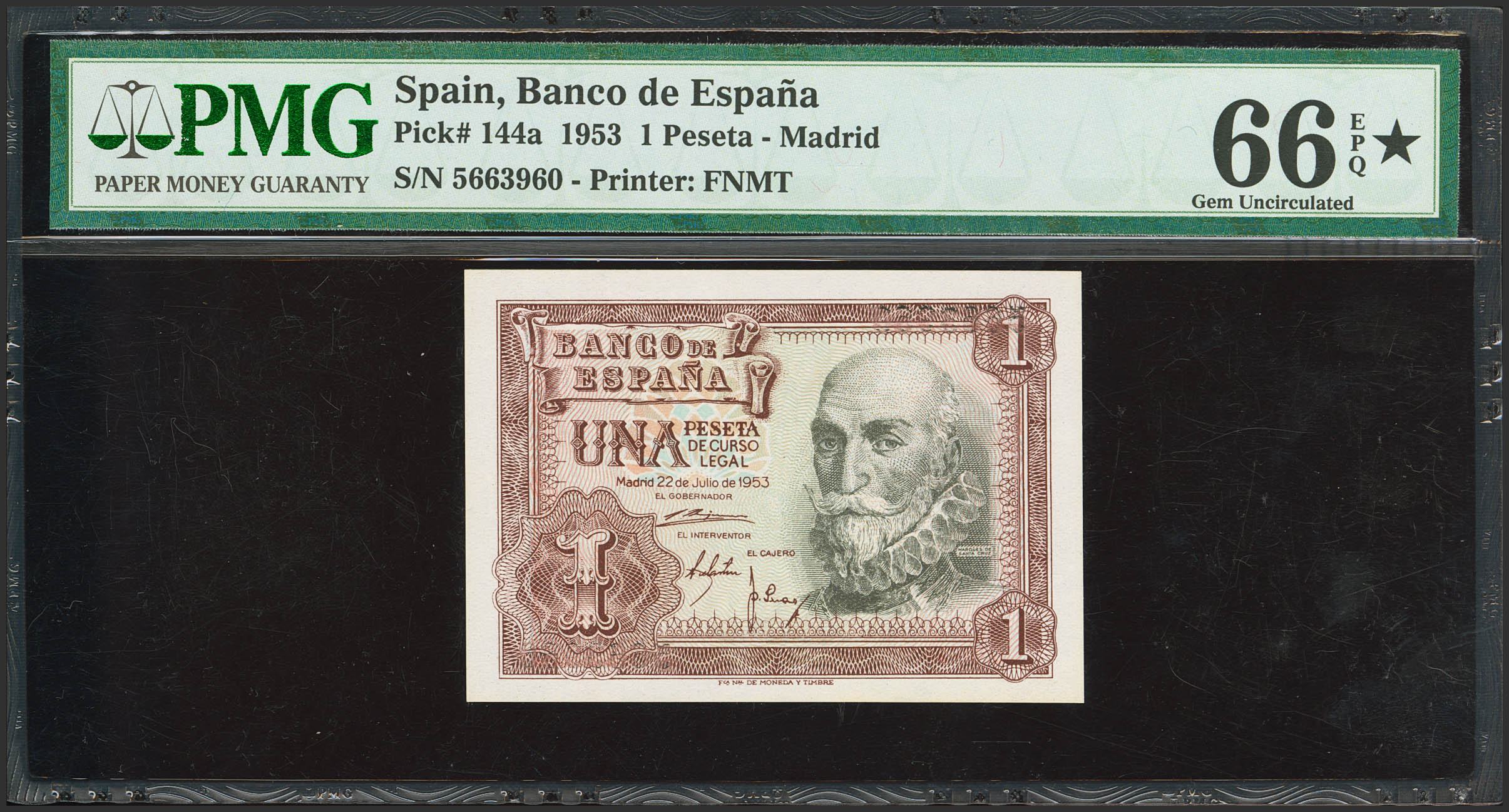 1 Peseta. 22 de Julio de 1953. Sin serie. (Edifil 2023: 465, Pick: 144a). Apresto original. SC. Encapsulado PMG66EPQ*.