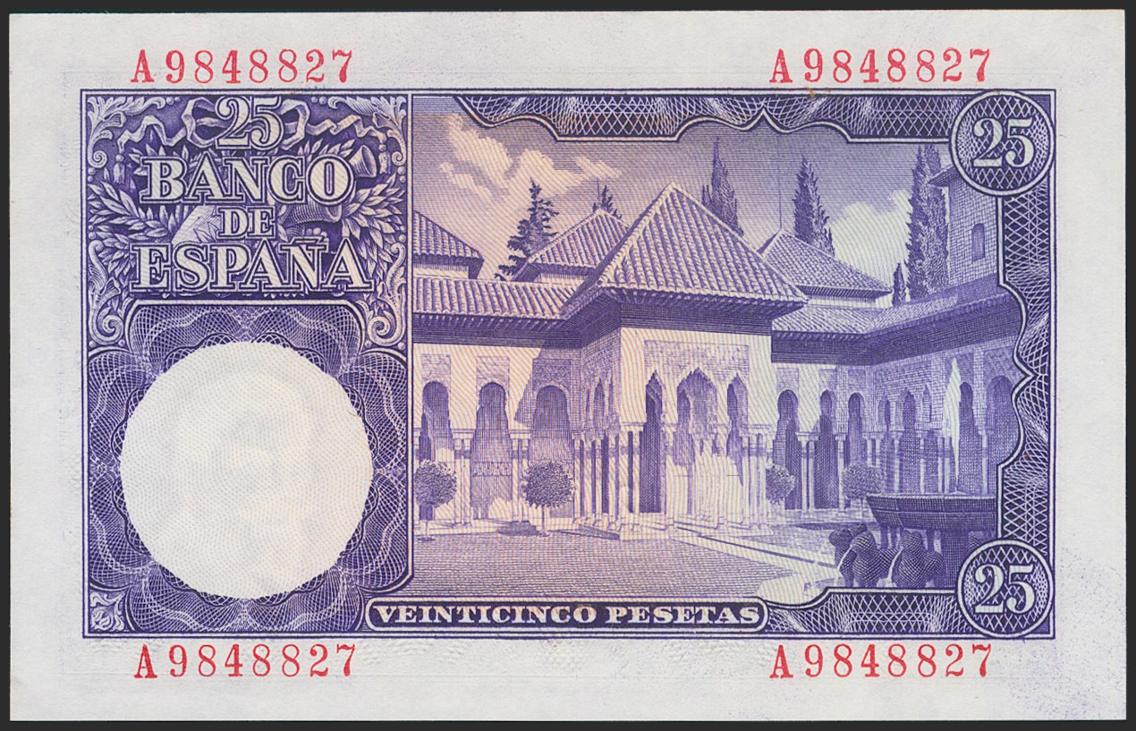 25 Pesetas. 22 de Julio de 1954. Serie A. (Edifil 2021: 467a). Apresto original. SC-.