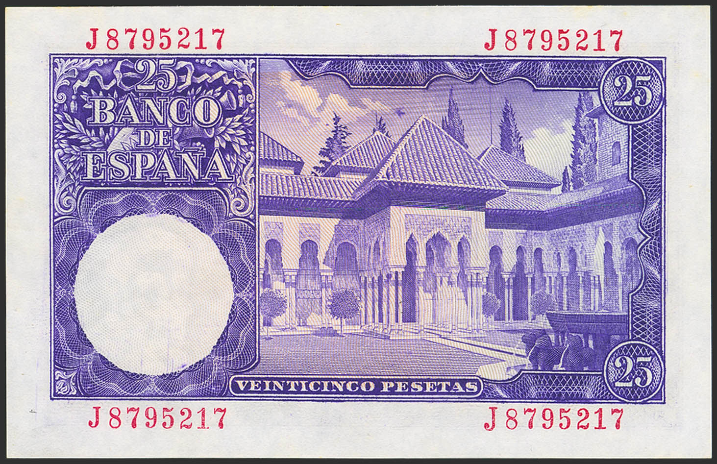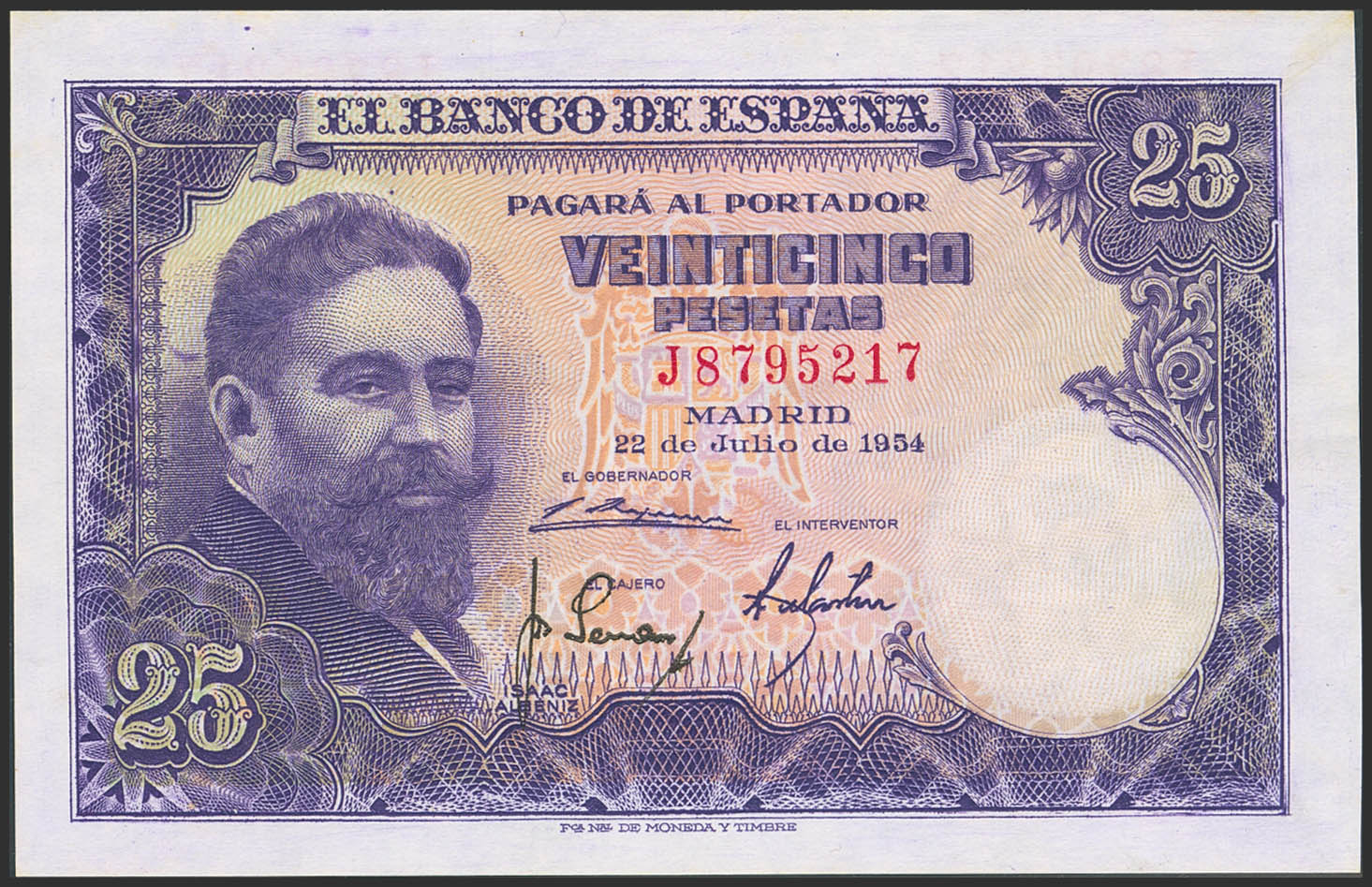 25 Pesetas. 22 de Julio de 1954. Serie J. (Edifil 2023: 467a). Apresto original. SC.
