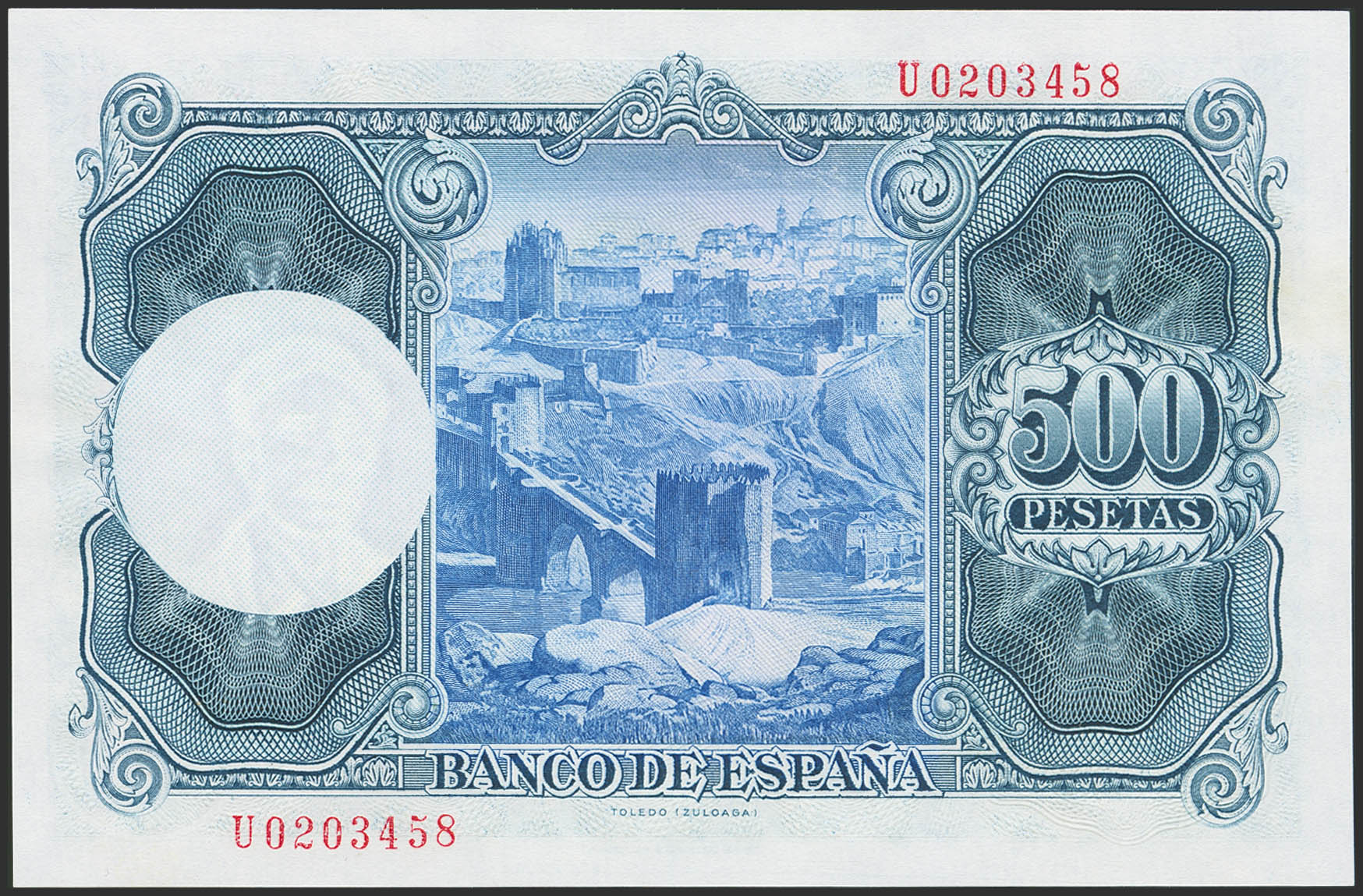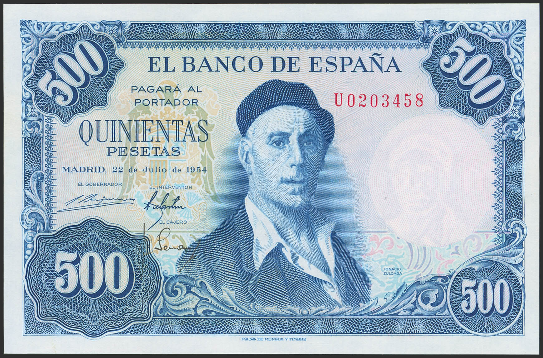 500 Pesetas. 22 de Julio de 1954. Serie U. (Edifil 2023: 468b). Apresto original. SC.