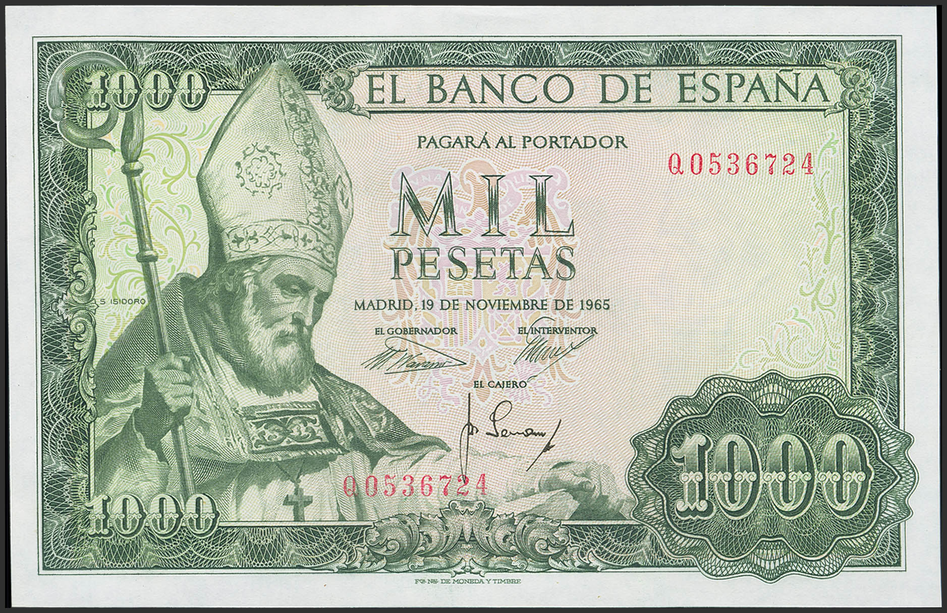 1000 Pesetas. 19 de Noviembre de 1965. Serie Q. (Edifil 2023: 471b). Apresto original. SC--.