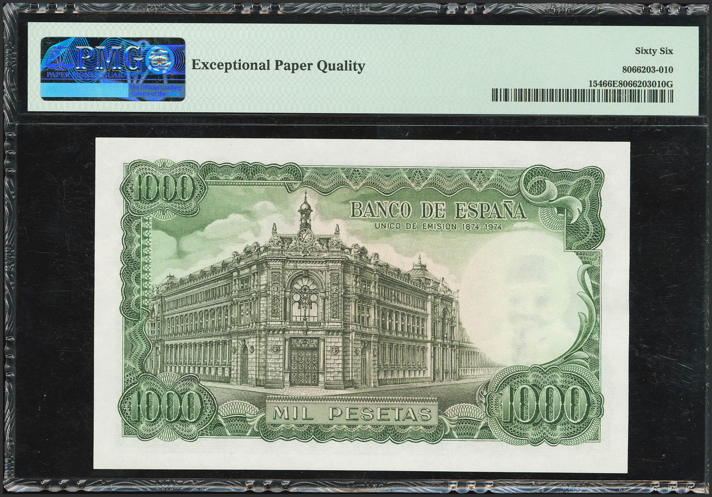 1000 Pesetas. 17 de Septiembre de 1971. Serie 1J. (Edifil 2023: 474c, Pick: 154). Apresto original. SC. Encapsulado PMG66EPQ.