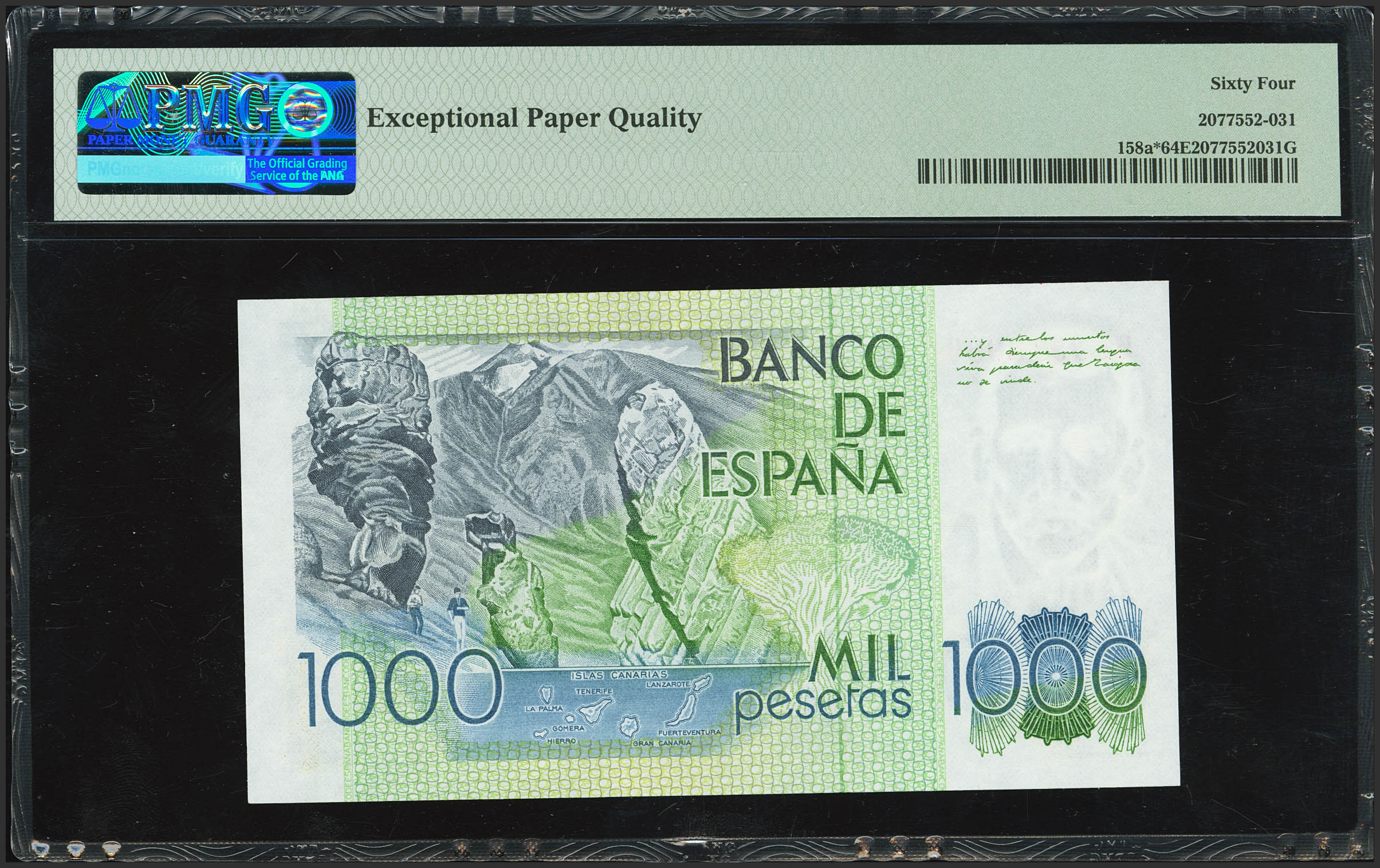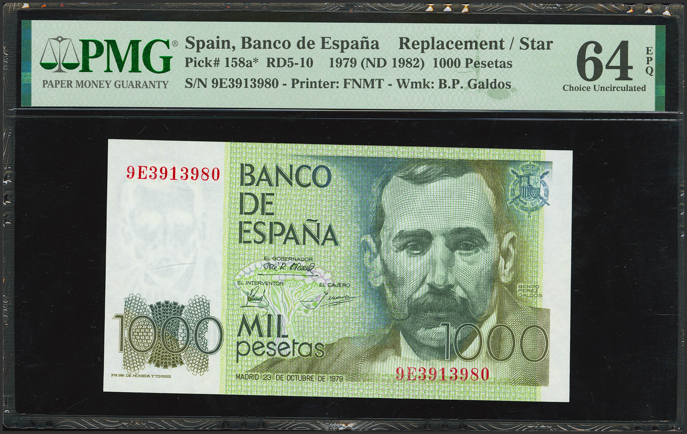 1000 Pesetas. 23 de Octubre de 1979. Serie especial 9E. (Edifil 2023: 477b, Pick: 158a*). Muy raro. SC. Encapsulado PMG64EPQ.