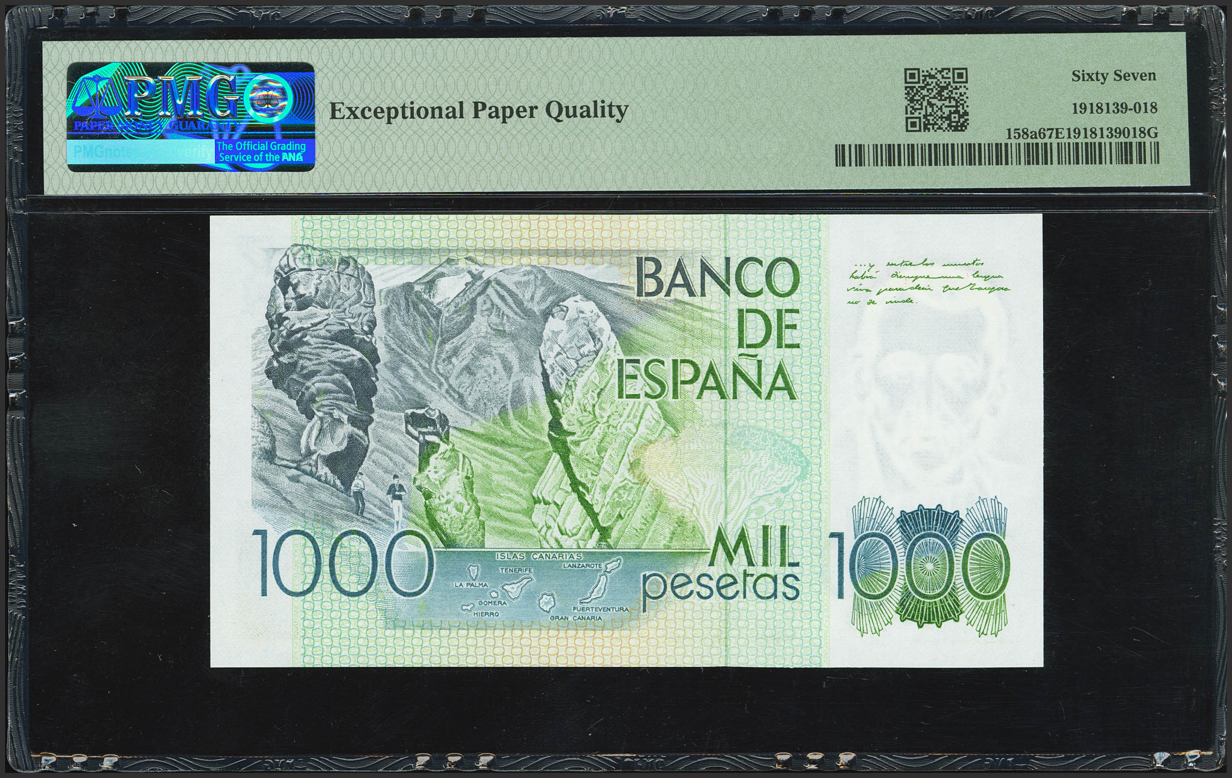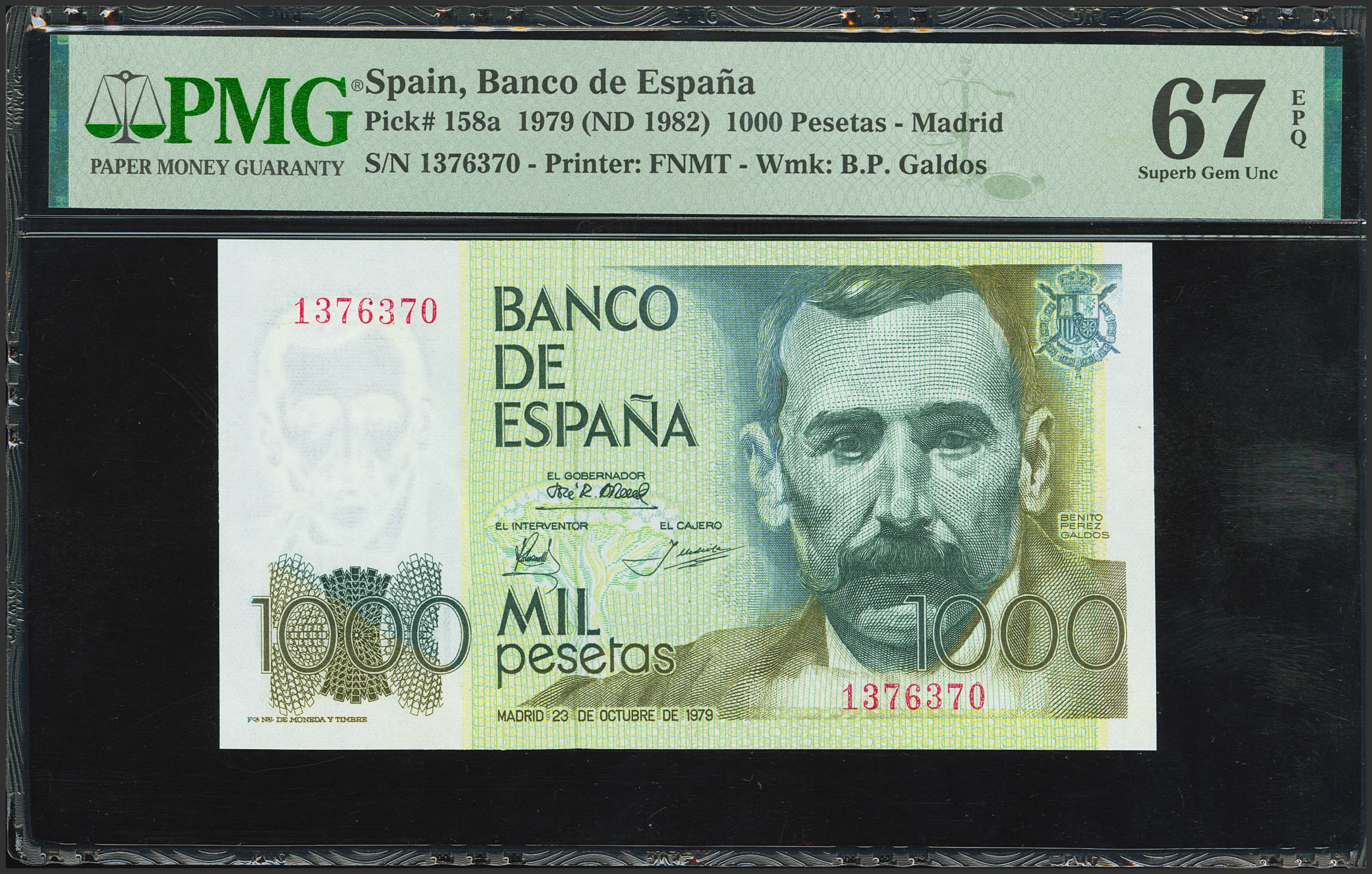 1000 Pesetas. 23 de Octubre de 1979. Sin serie. (Edifil 2023: 477, Pick: 158a). SC. Encapsulado PMG67EPQ.