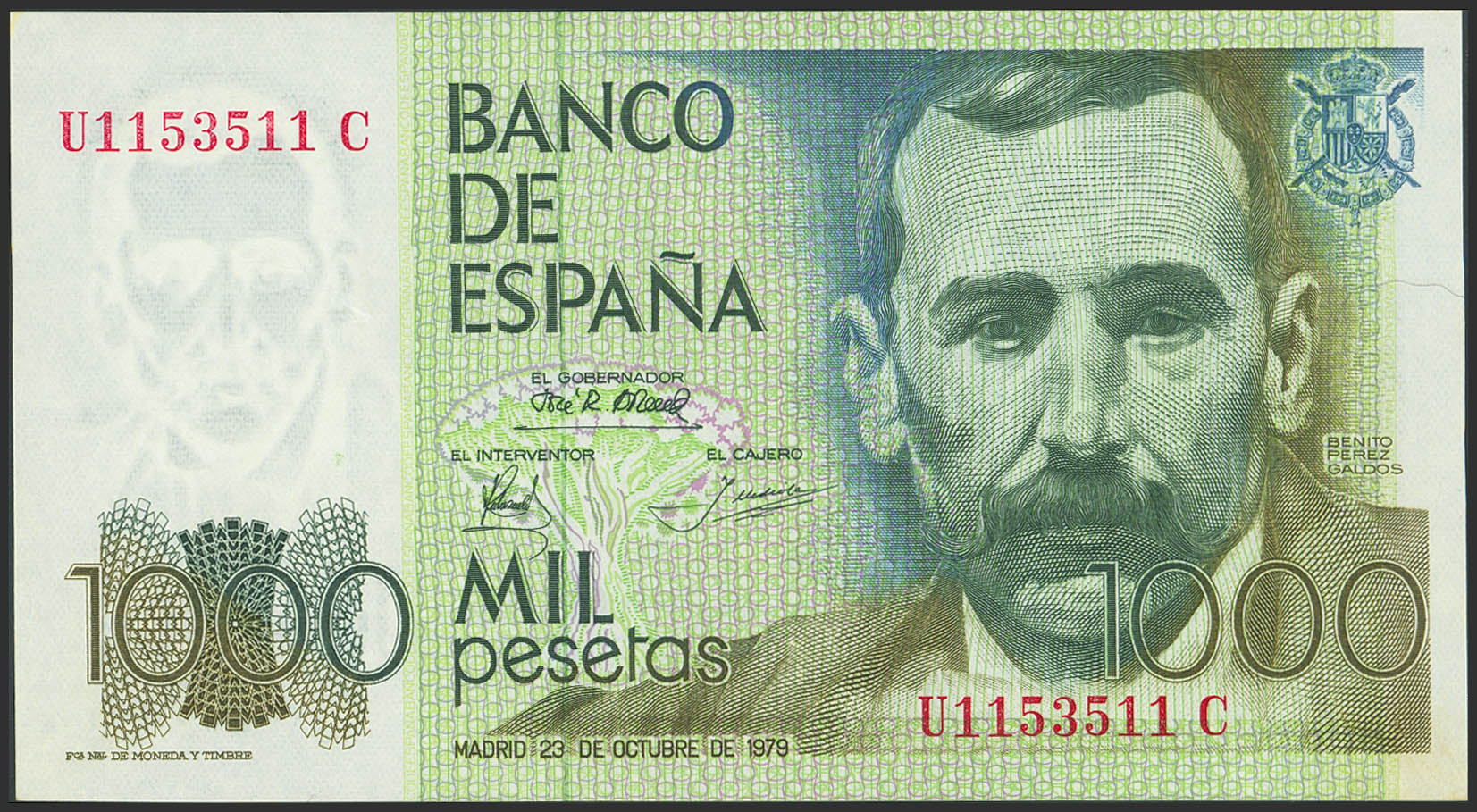 1000 Pesetas. 23 de Octubre de 1979. Serie U-C y numeración capicúa. (Edifil 2023: 477a). SC.