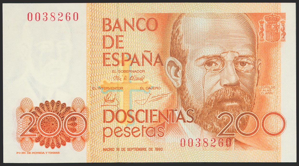 200 Pesetas. 16 de Septiembre de 1980. Sin serie y numeración muy baja. (Edifil 2021: 480). SC.