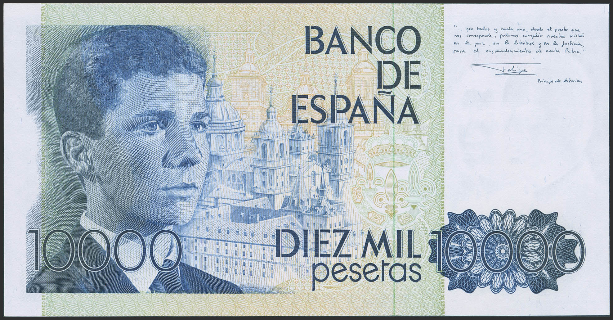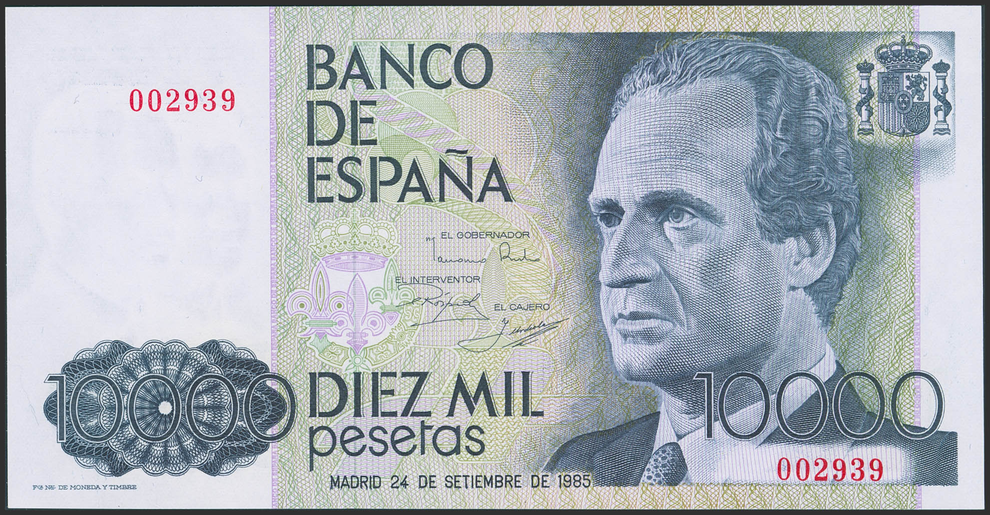 10000 Pesetas. 24 de Septiembre de 1985. Sin serie y numeración bajísima. (Edifil 2023: 481). SC-.