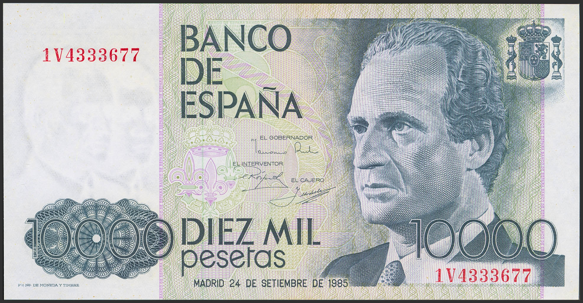 10000 Pesetas. 24 de Septiembre de 1985. Serie 1V. (Edifil 2023: 481a). SC.