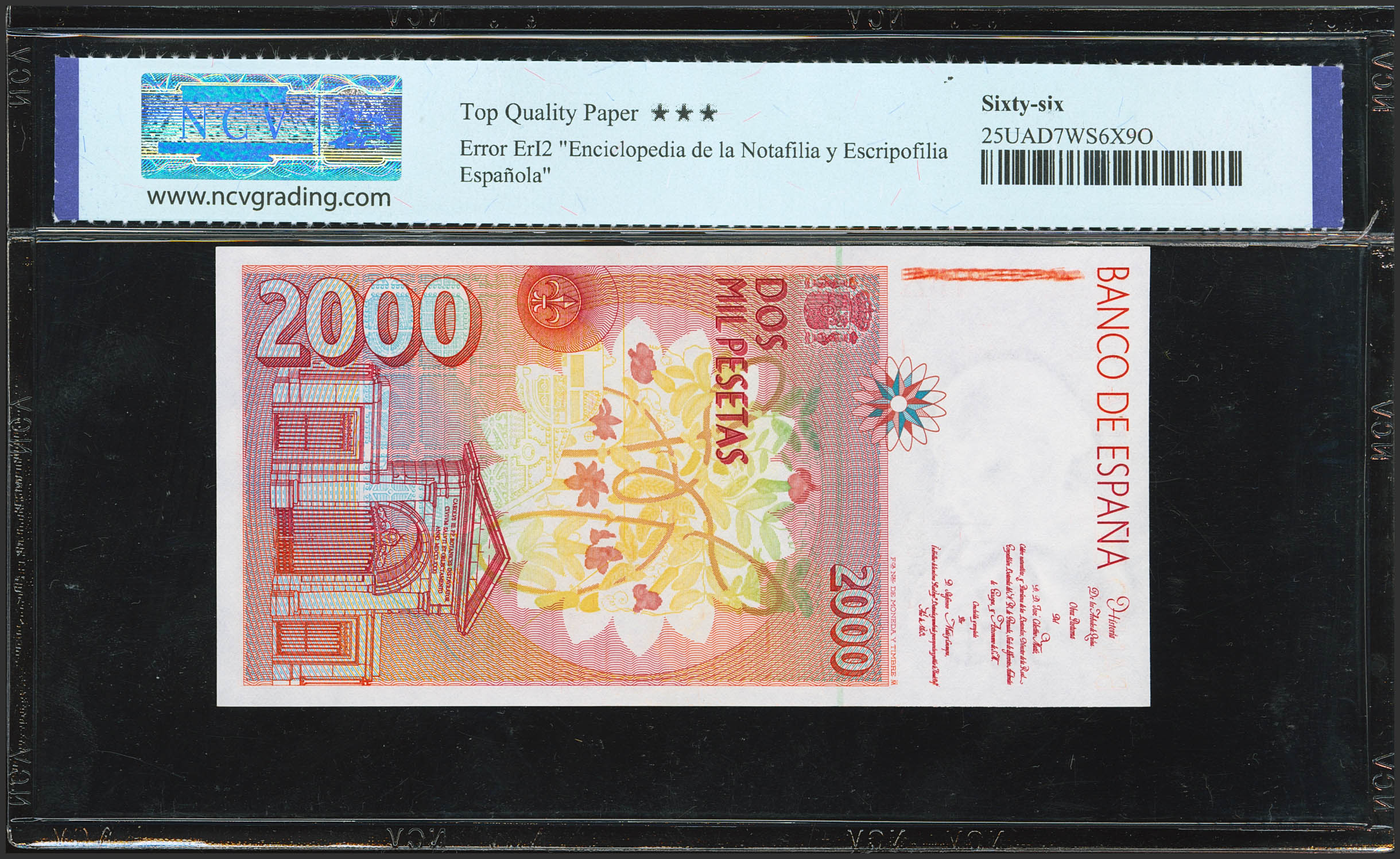 2000 Pesetas. 24 de Abril de 1992. Sin serie. (Edifil 2023: 482, Pick: 162). SC. Encapsulado NCV66TQP.
