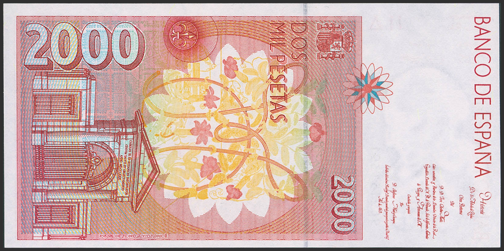 2000 Pesetas. 24 de Abril de 1992 (diseño modificado en 1995). Serie especial 9C. (Edifil 2023: 482Ad). Raro. SC.