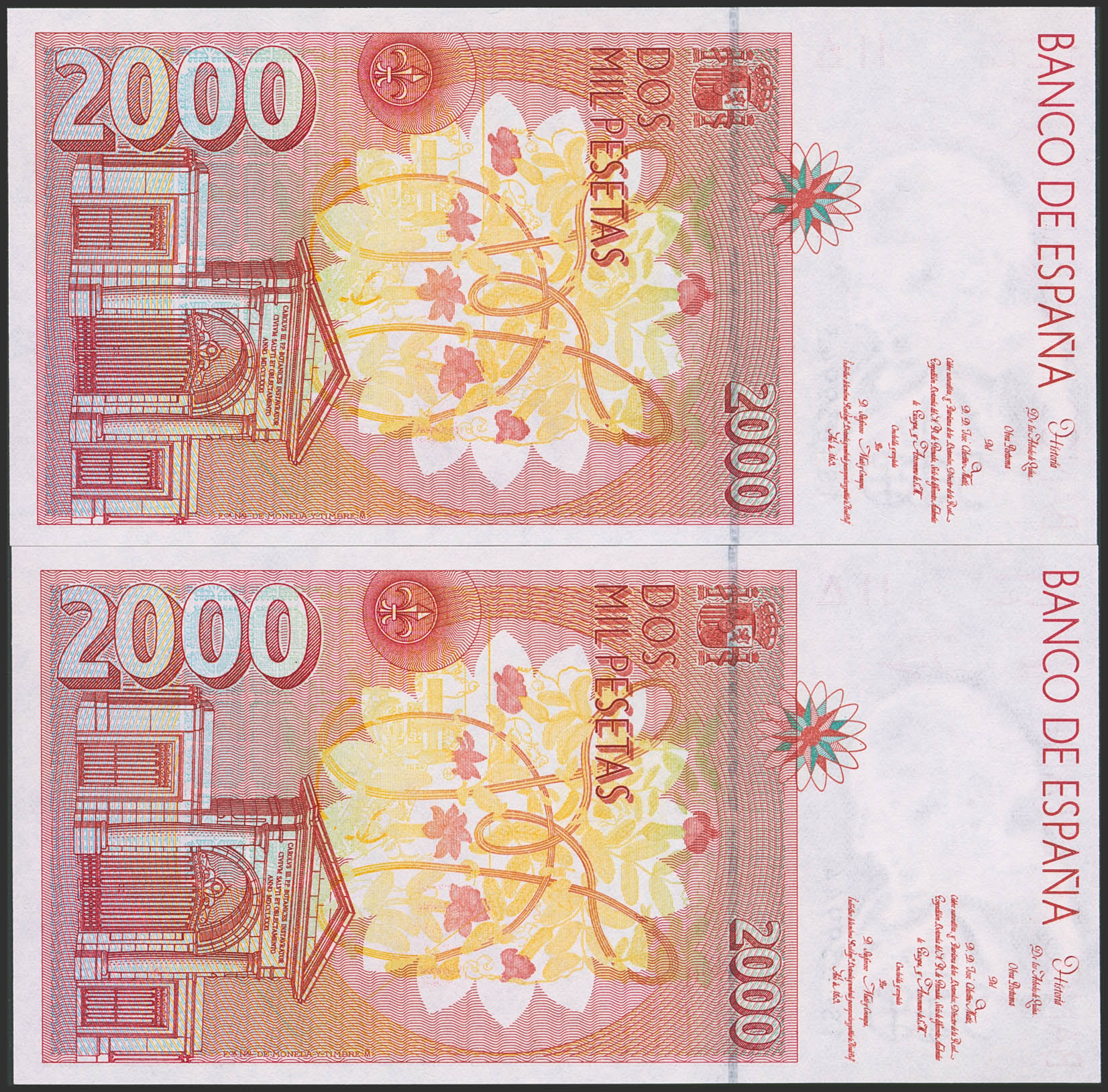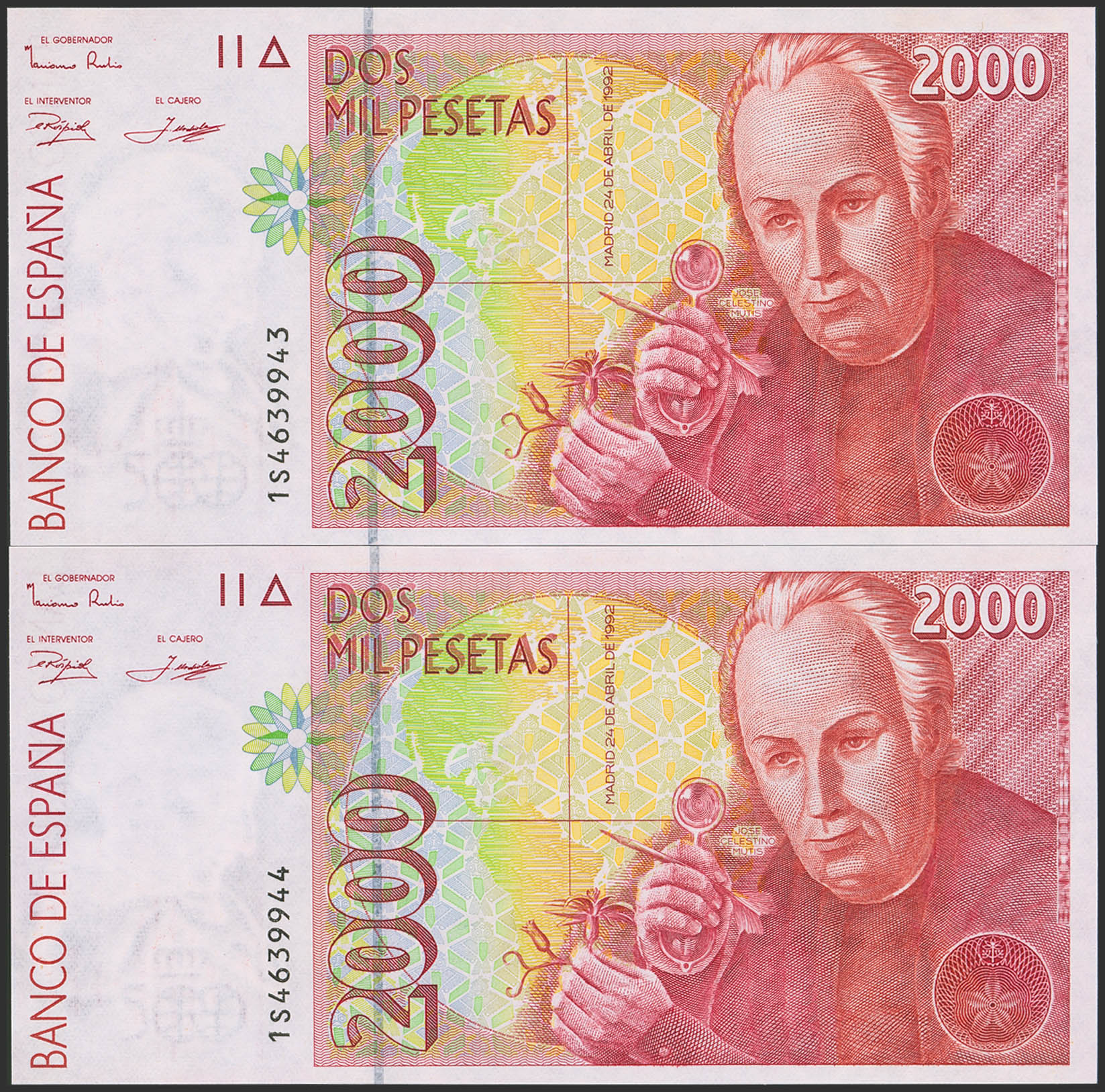 2000 Pesetas. 24 de Abril de 1992. Pareja correlativa. Serie 1S. (Edifil 2023: 482A). SC.