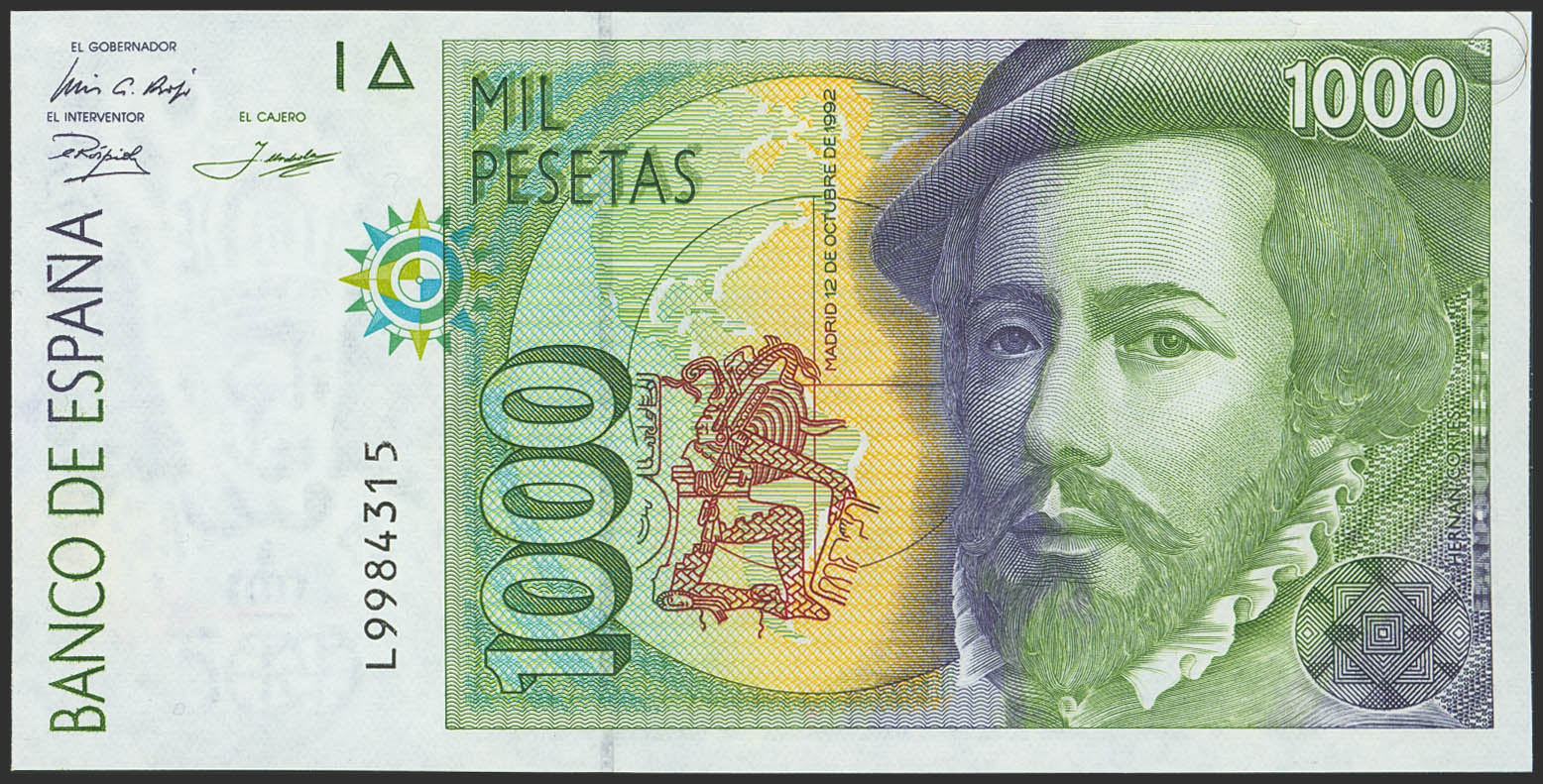 1000 Pesetas. 12 de Octubre de 1992. Serie L. (Edifil 2023: 483a). SC.