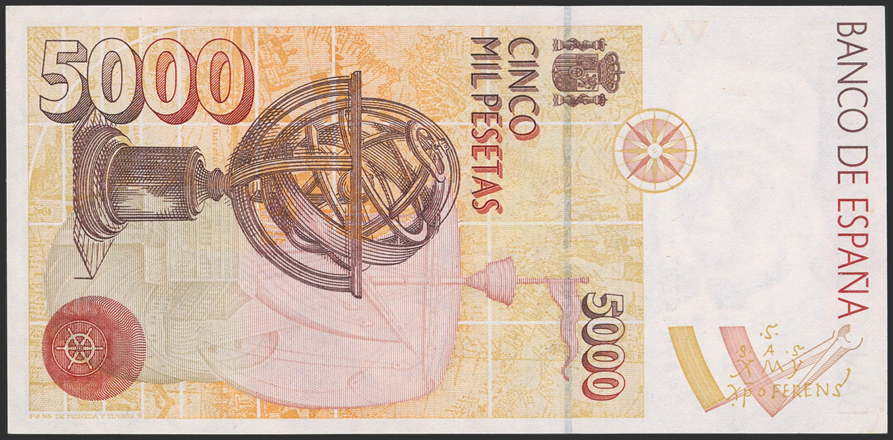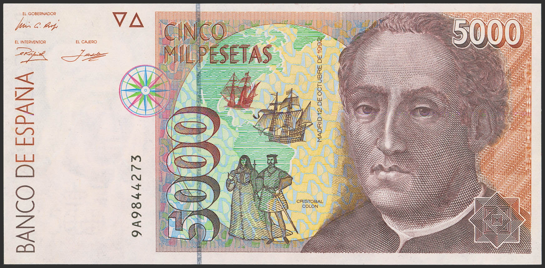 5000 Pesetas. 12 de Octubre de 1992. Serie especial 9A. (Edifil 2023: 484b). SC.