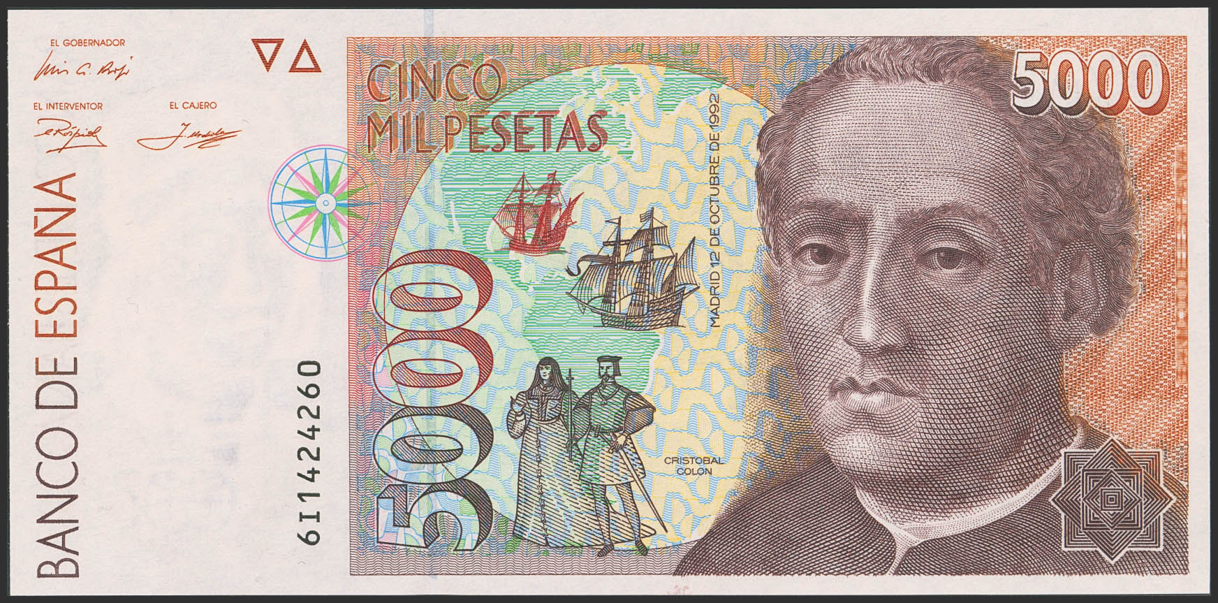 5000 Pesetas. 12 de Octubre de 1992. Serie 6I. (Edifil 2023: 484a). SC.