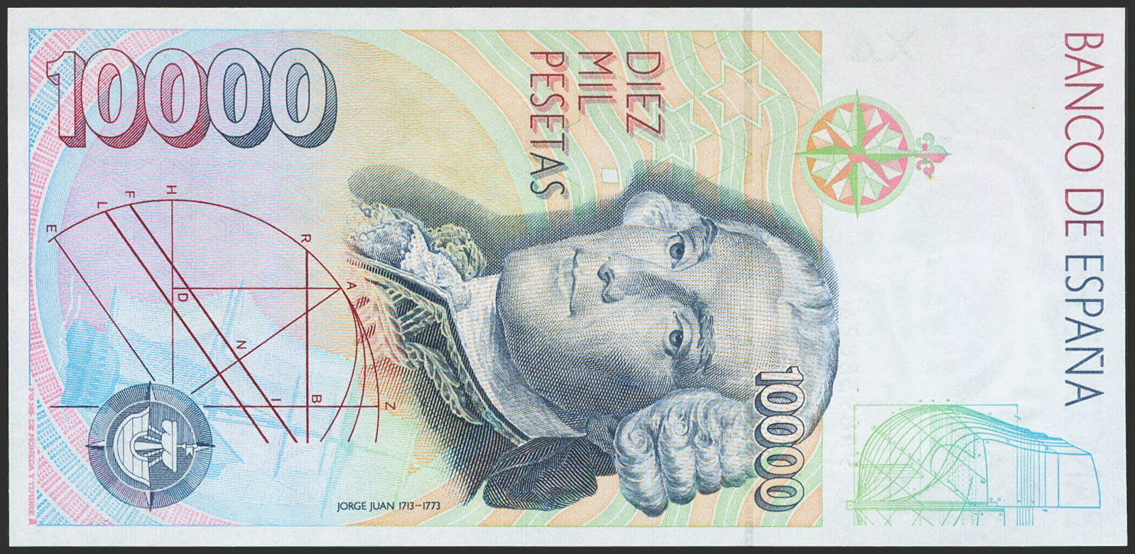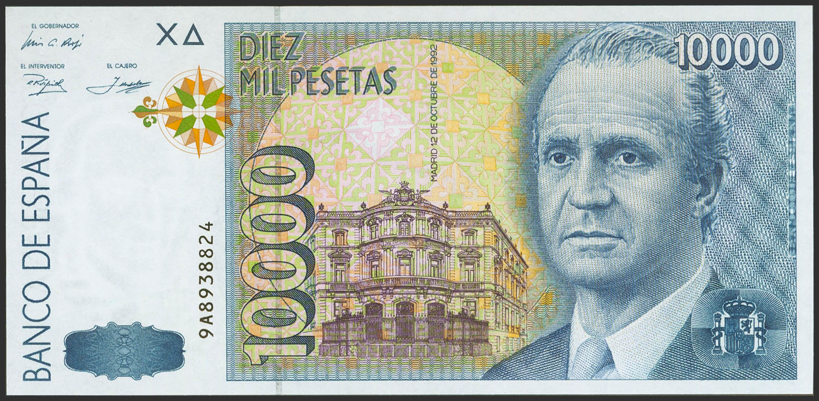 10000 Pesetas. 12 de Octubre de 1992. Serie especial 9A. (Edifil 2021: 485b). Ondulación natural del proceso de fabricación (este es el único motivo de "quitarle" el SC). EBC+.