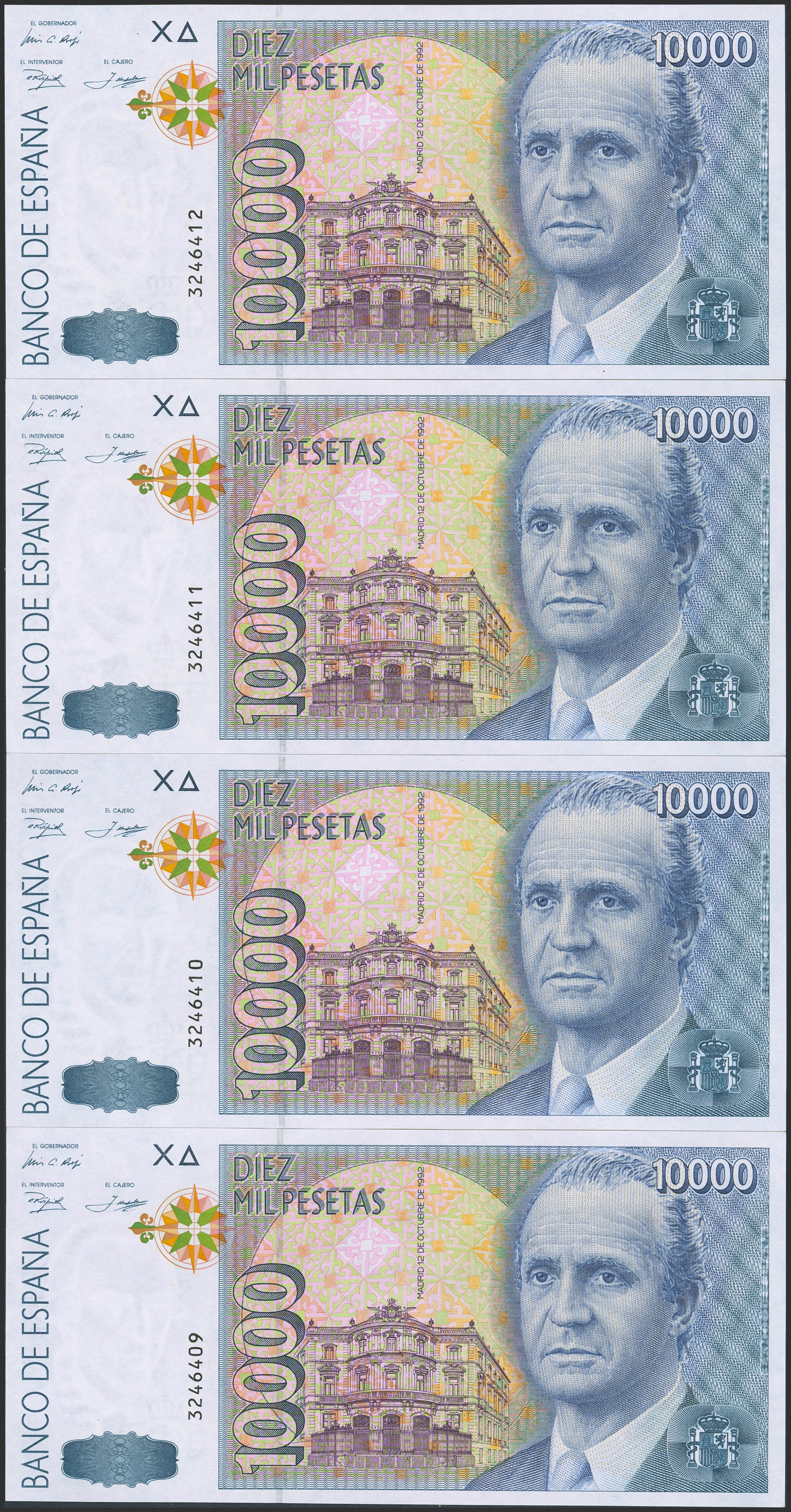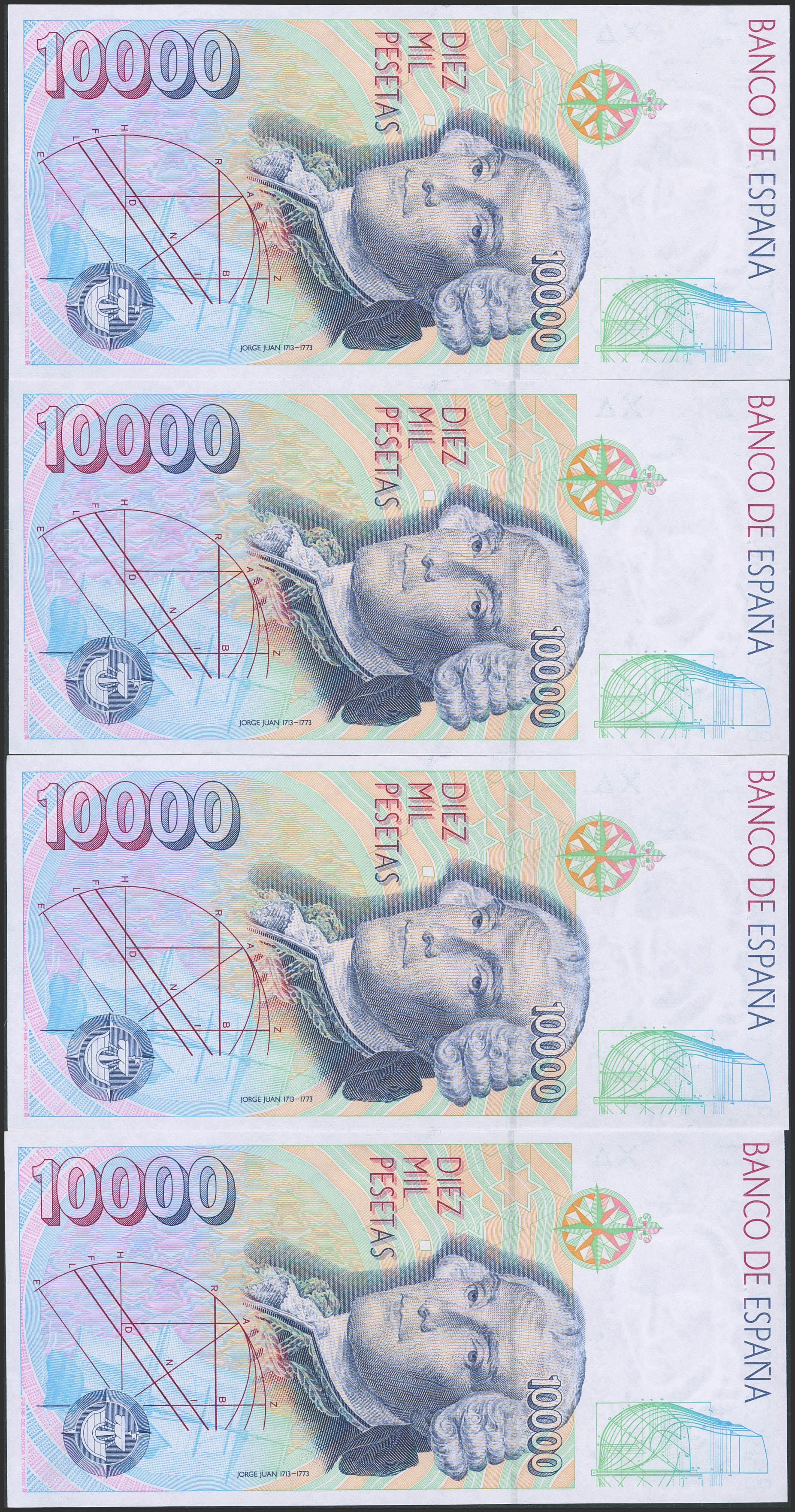 Conjunto de 4 billetes correlativos de 10000 Pesetas emitidos el 12 de Diciembre de 1992, sin serie. (Edifil 2023: 485). SC.