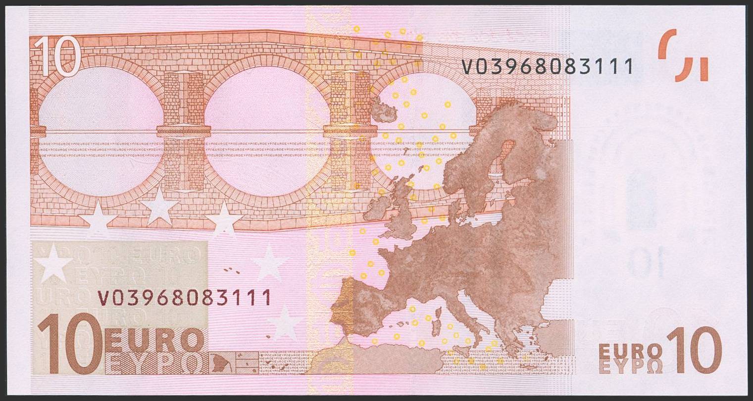 10 Euros. 1 de Enero de 2002. Firma Duisenberg. Serie V (España). (Edifil 2023: 487). SC.