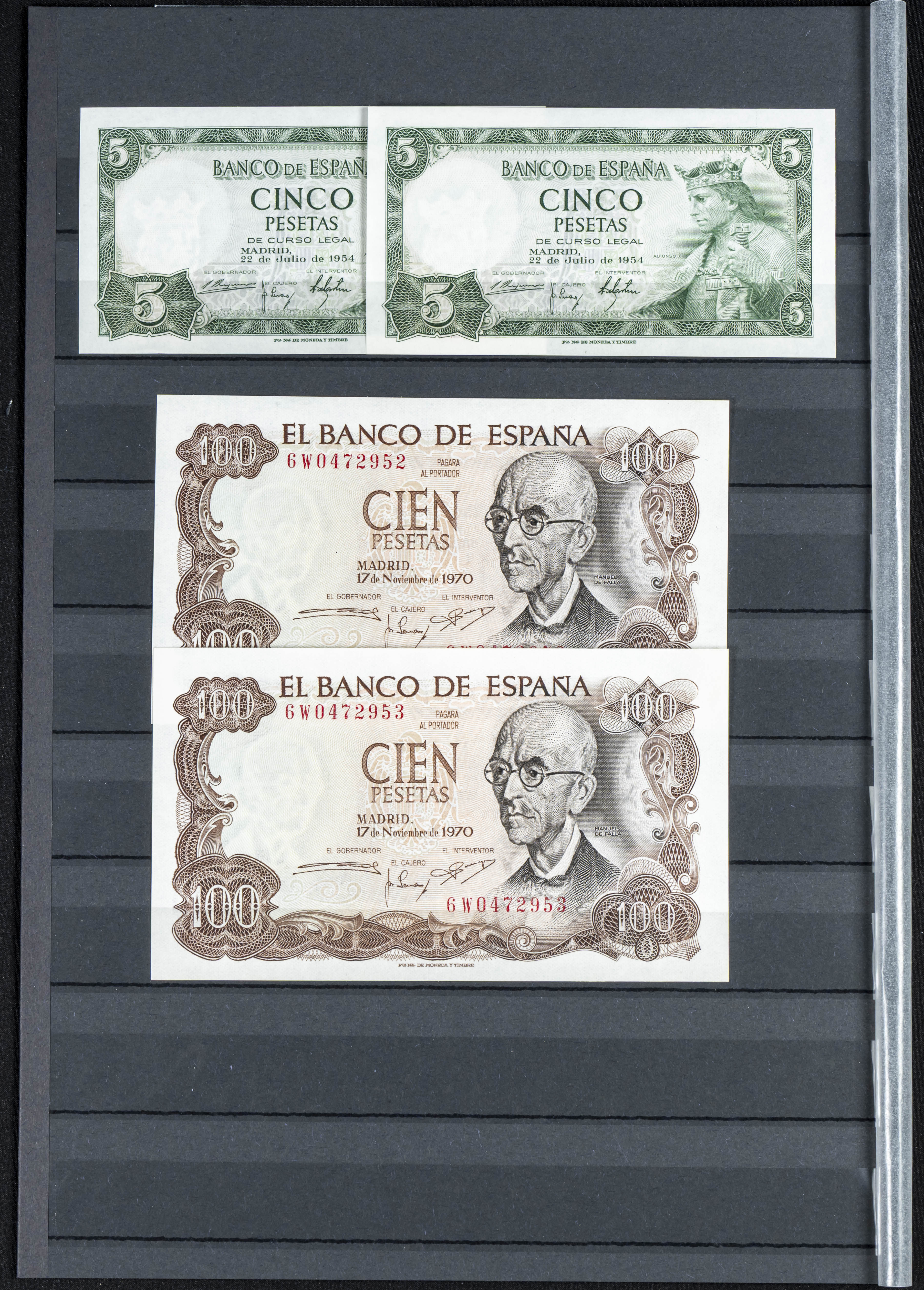 Conjunto de 8 billetes del Banco de España, de diferentes emisiones y en diversas calidades. A EXAMINAR.