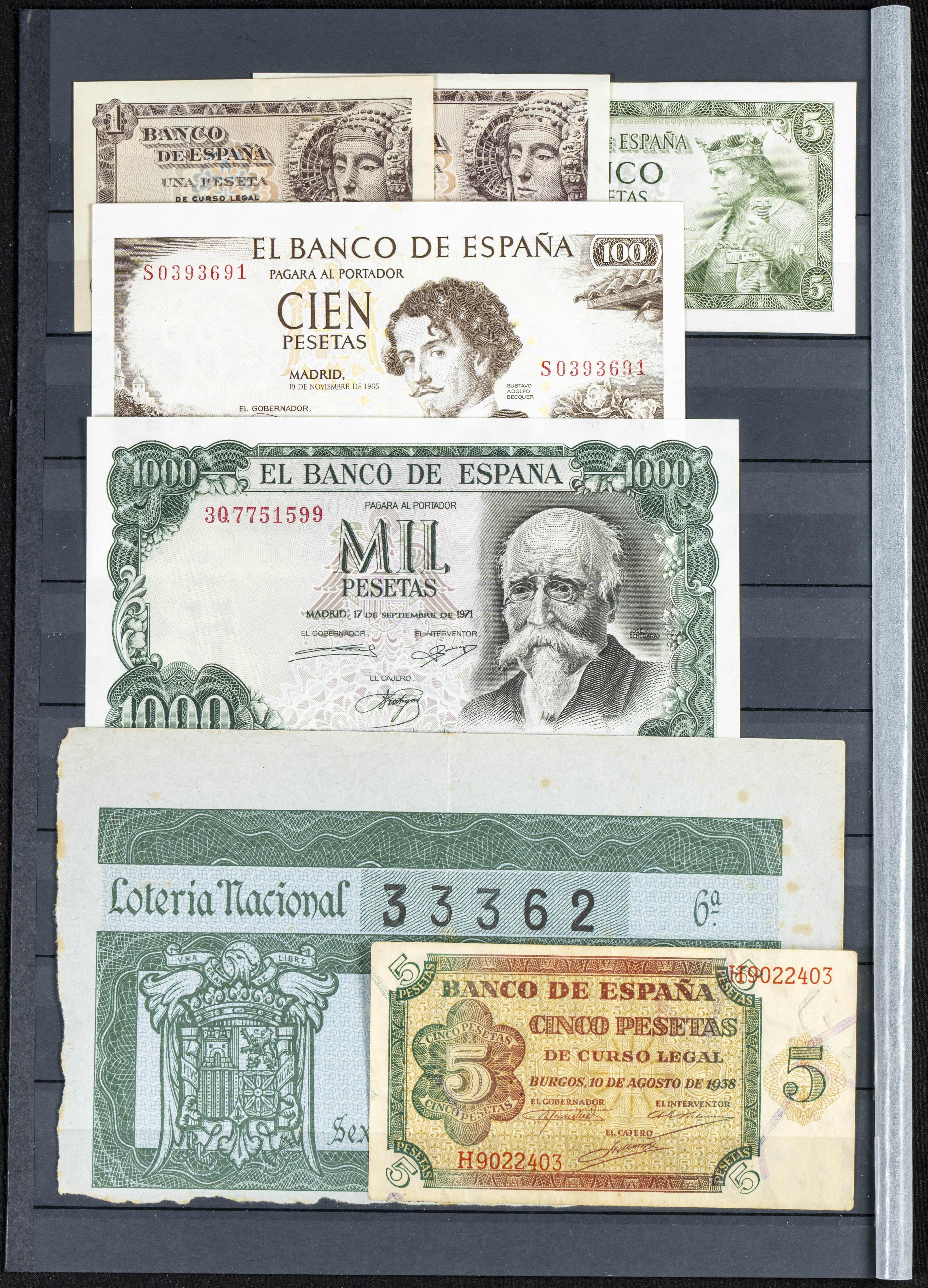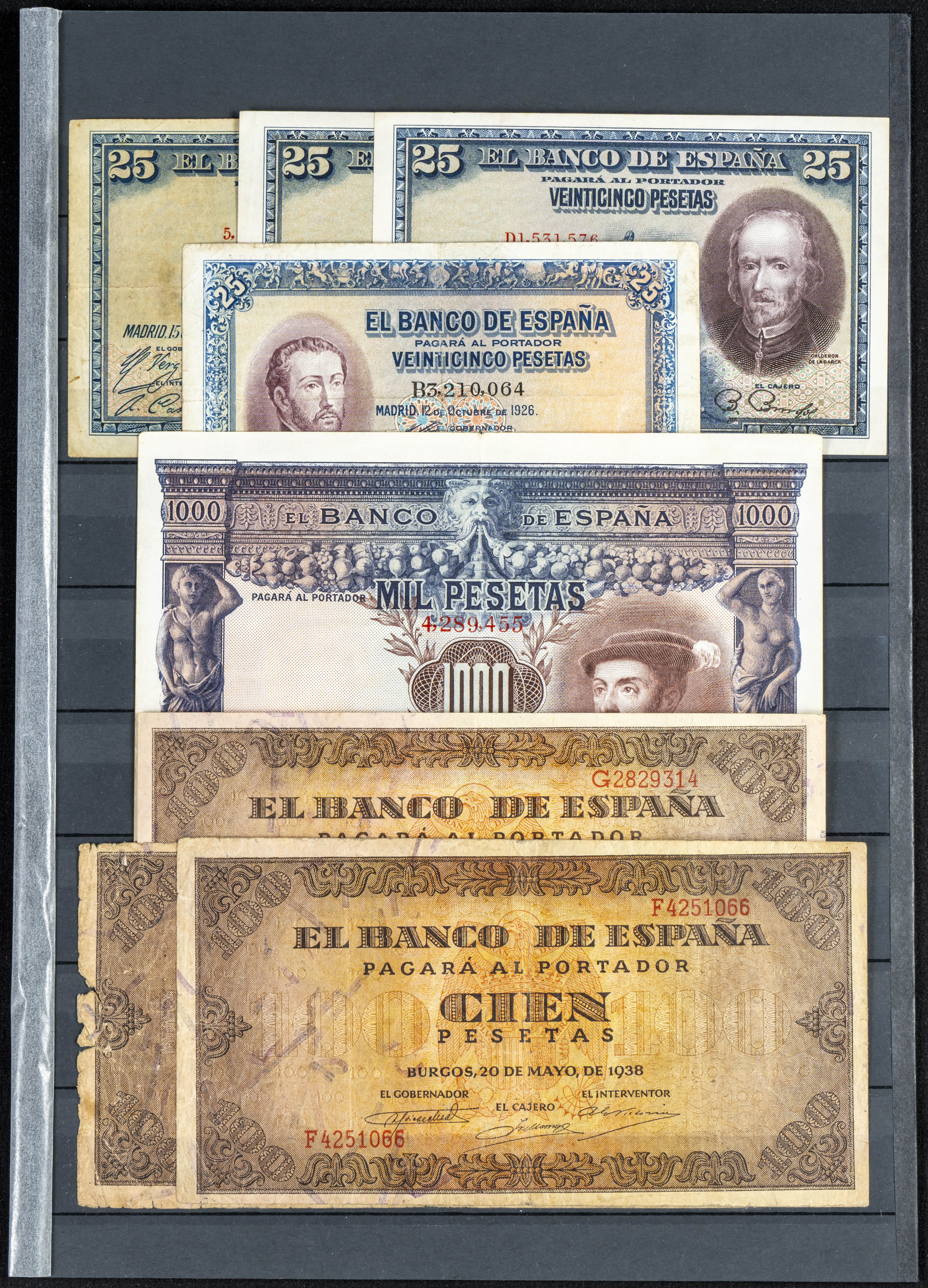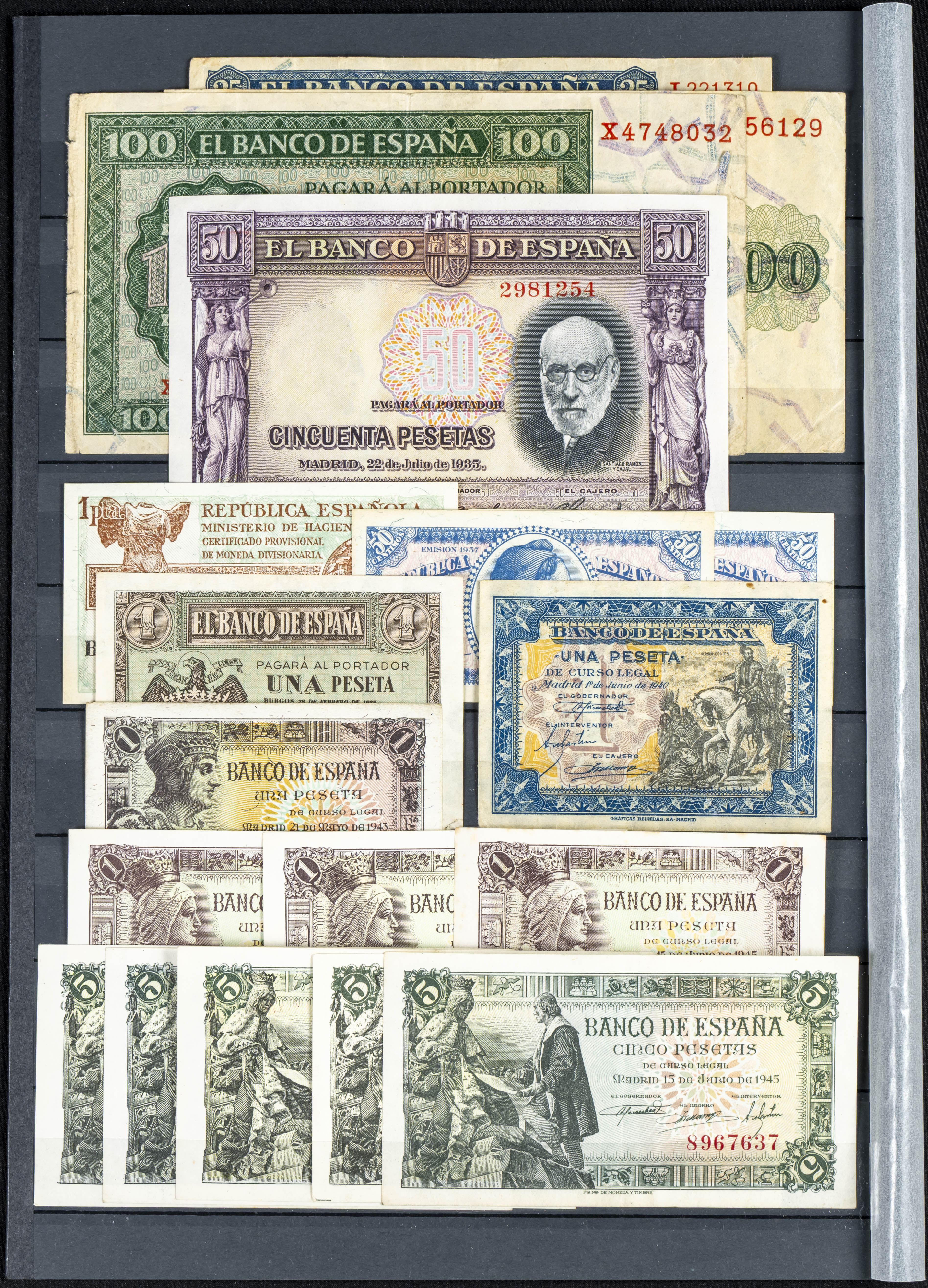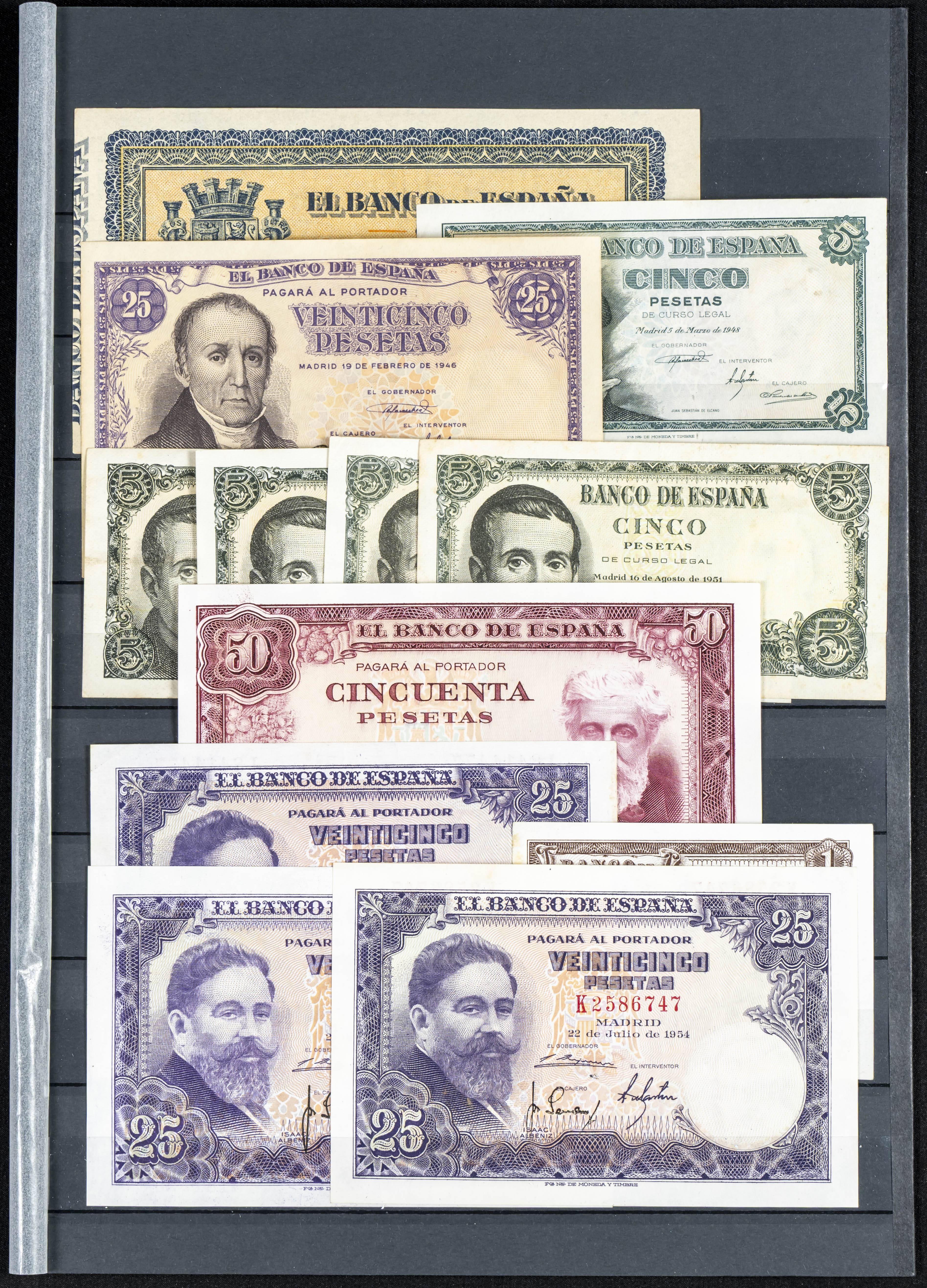 Conjunto de más de 35 billetes del Banco de España de diferentes emisiones y en diversas calidades. A EXAMINAR.