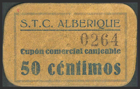 ALBERIQUE (VALENCIA). 50 Céntimos. (1937ca). (González: 219). Raro. MBC.