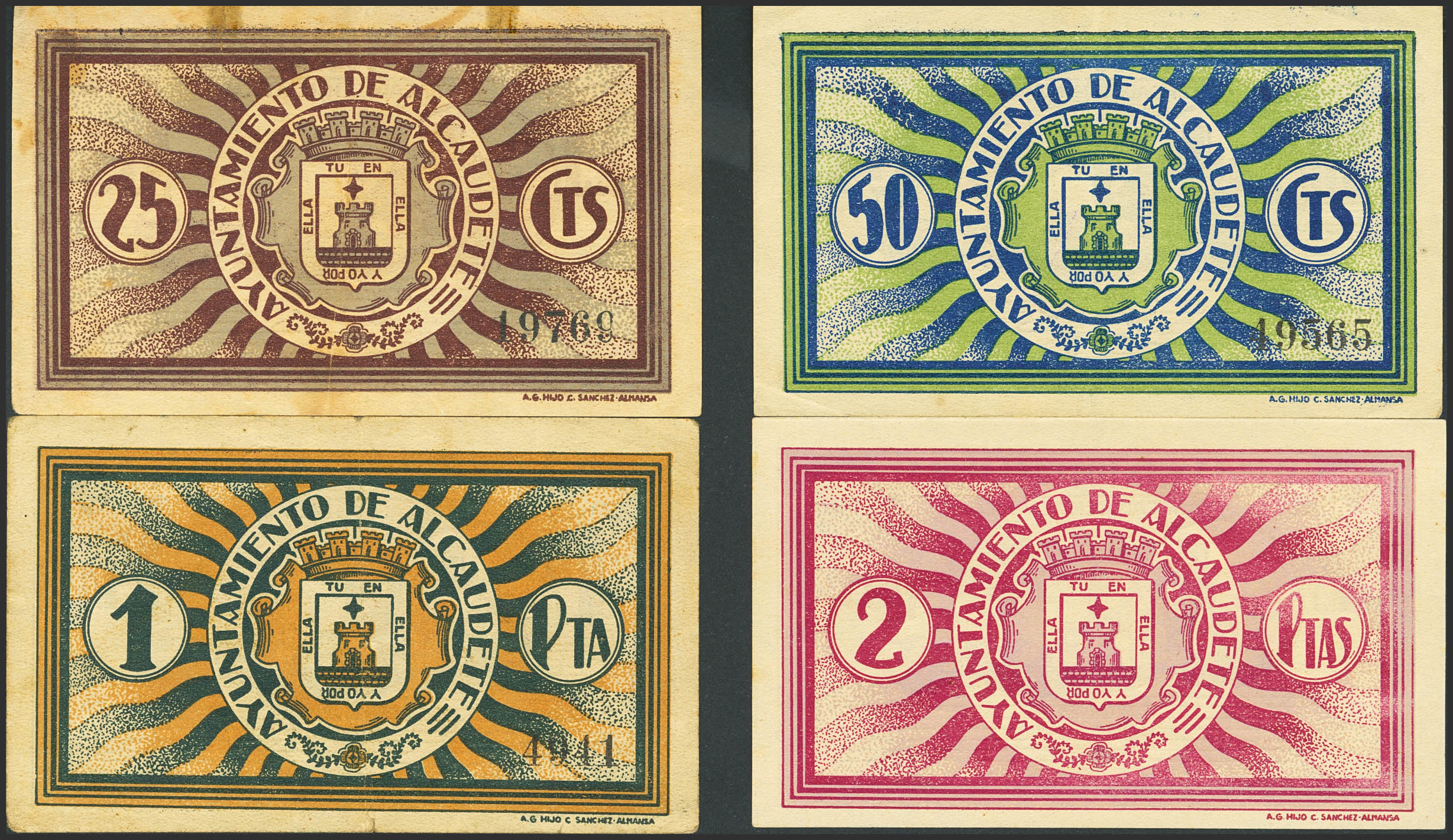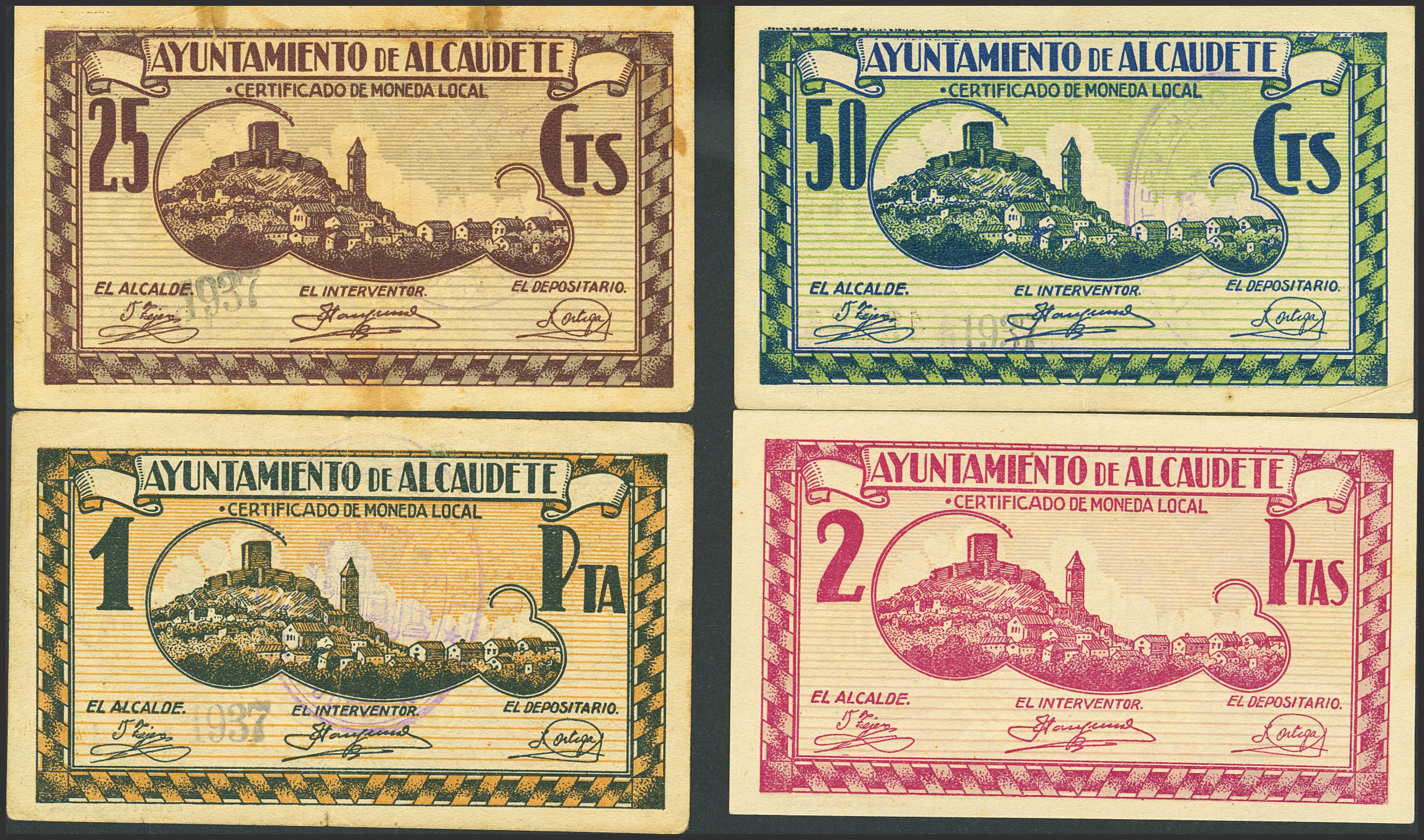 ALCAUDETE (JAEN). 25 Céntimos, 50 Céntimos, 1 Peseta y 2 Pesetas. 1937. (González: 310/13). Inusual serie completa. MBC-/SC-.