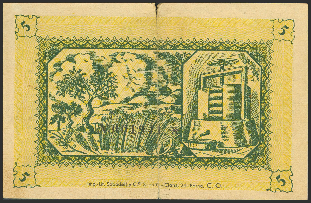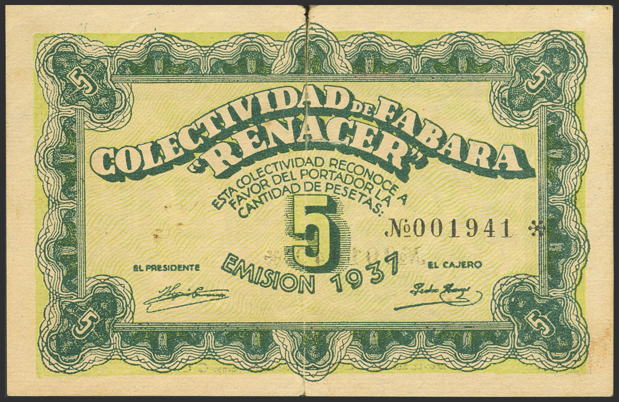 FABARA (ZARAGOZA). 5 Pesetas. 1937. (González: 2391). Rarísimo. BC.