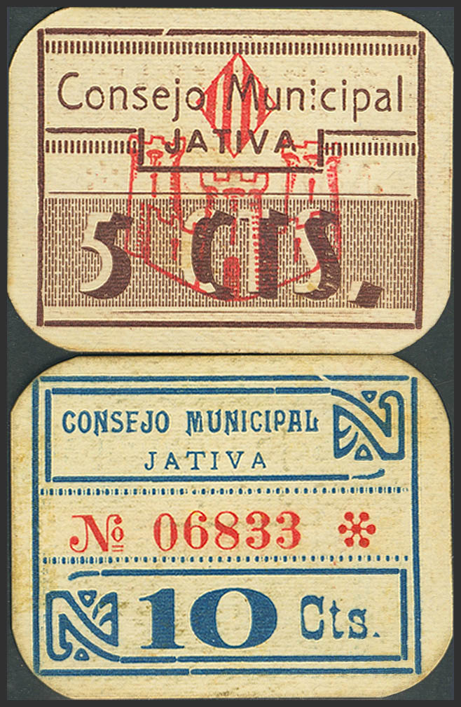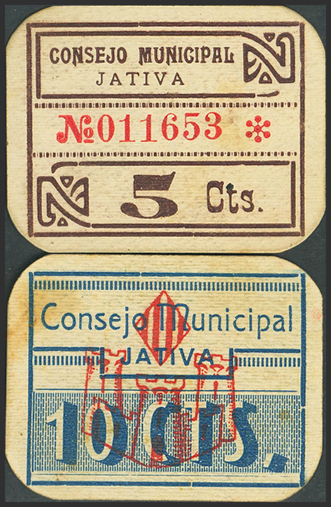 JATIVA (VALENCIA). 5 Céntimos y 10 Céntimos. (1937ca). (González: 3027/28). Inusual serie completa. SC--.