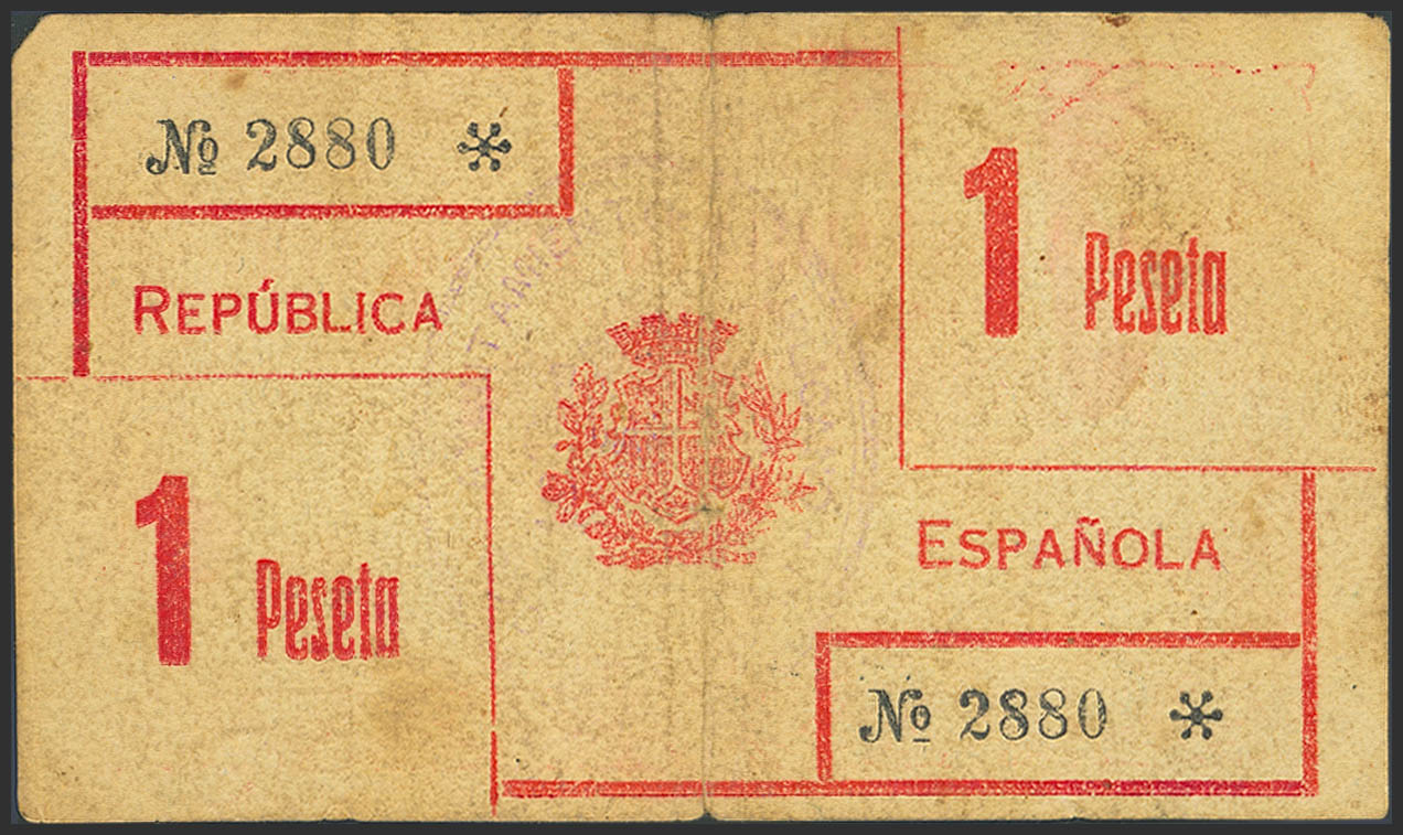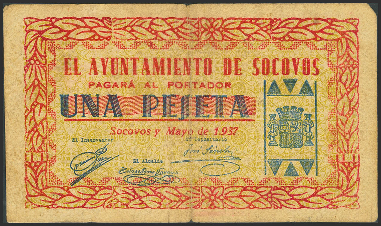 SOCOVOS (ALBACETE). 1 Peseta. Mayo de 1937. (González: 4881). Raro. BC+.
