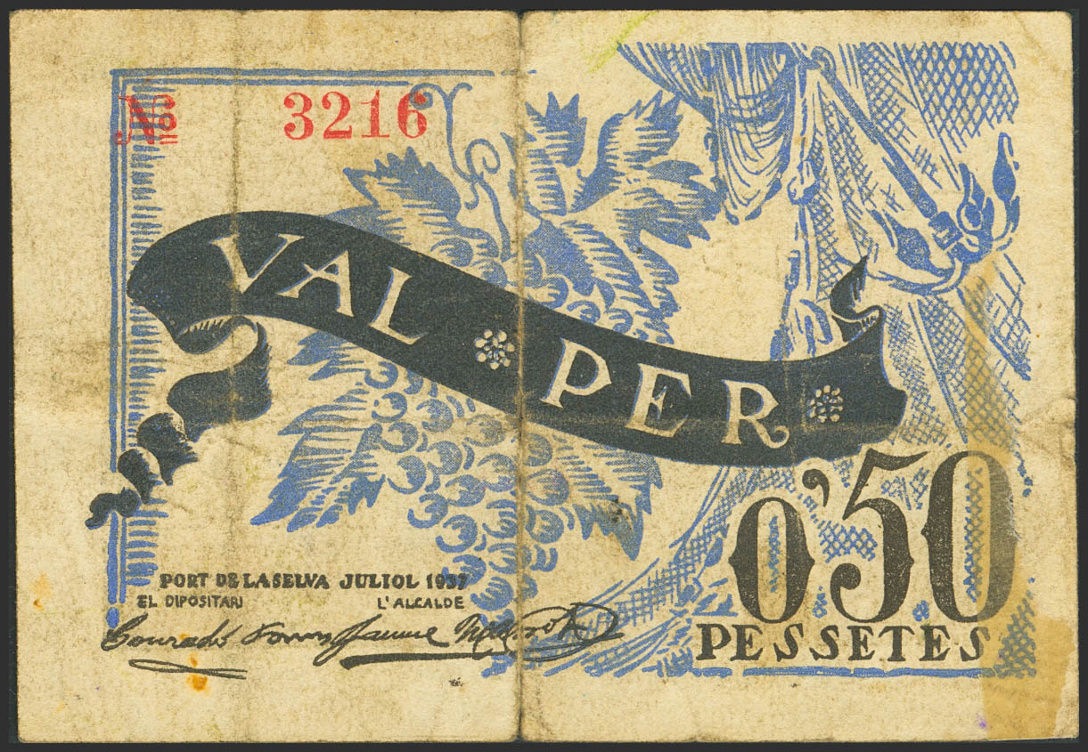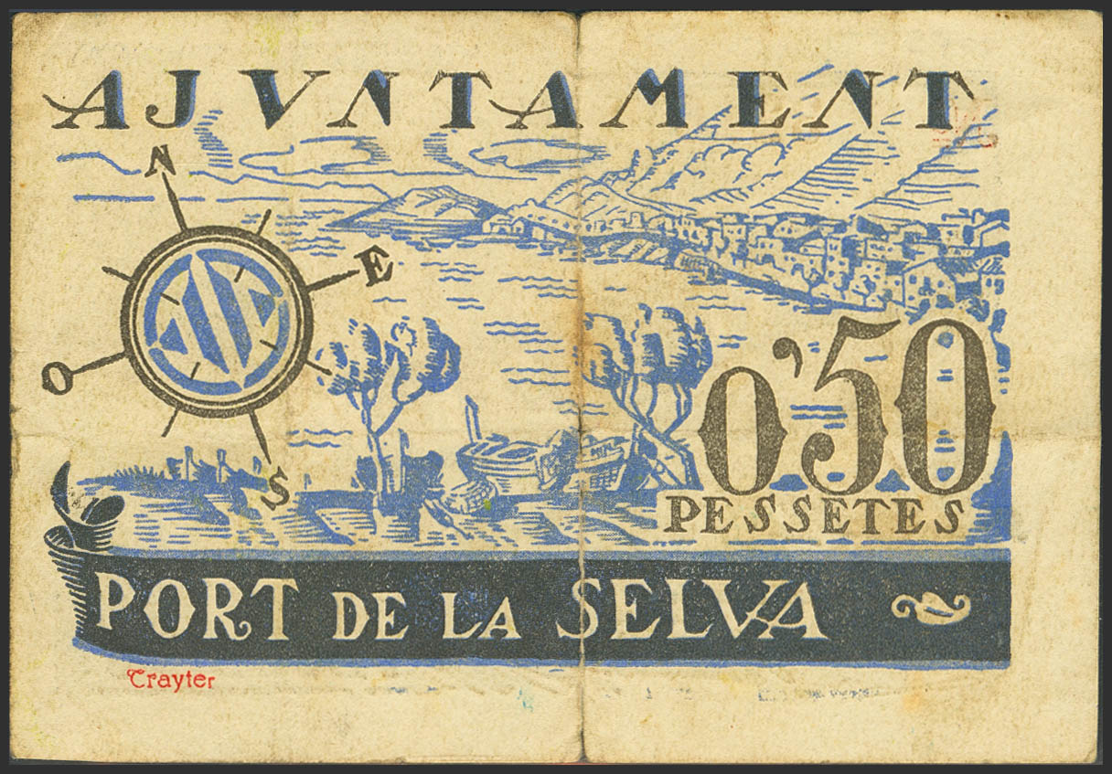 PORT DE LA SELVA (GERONA). 50 Céntimos. Junio de 1937. (González: 9406). Inusual. BC-.
