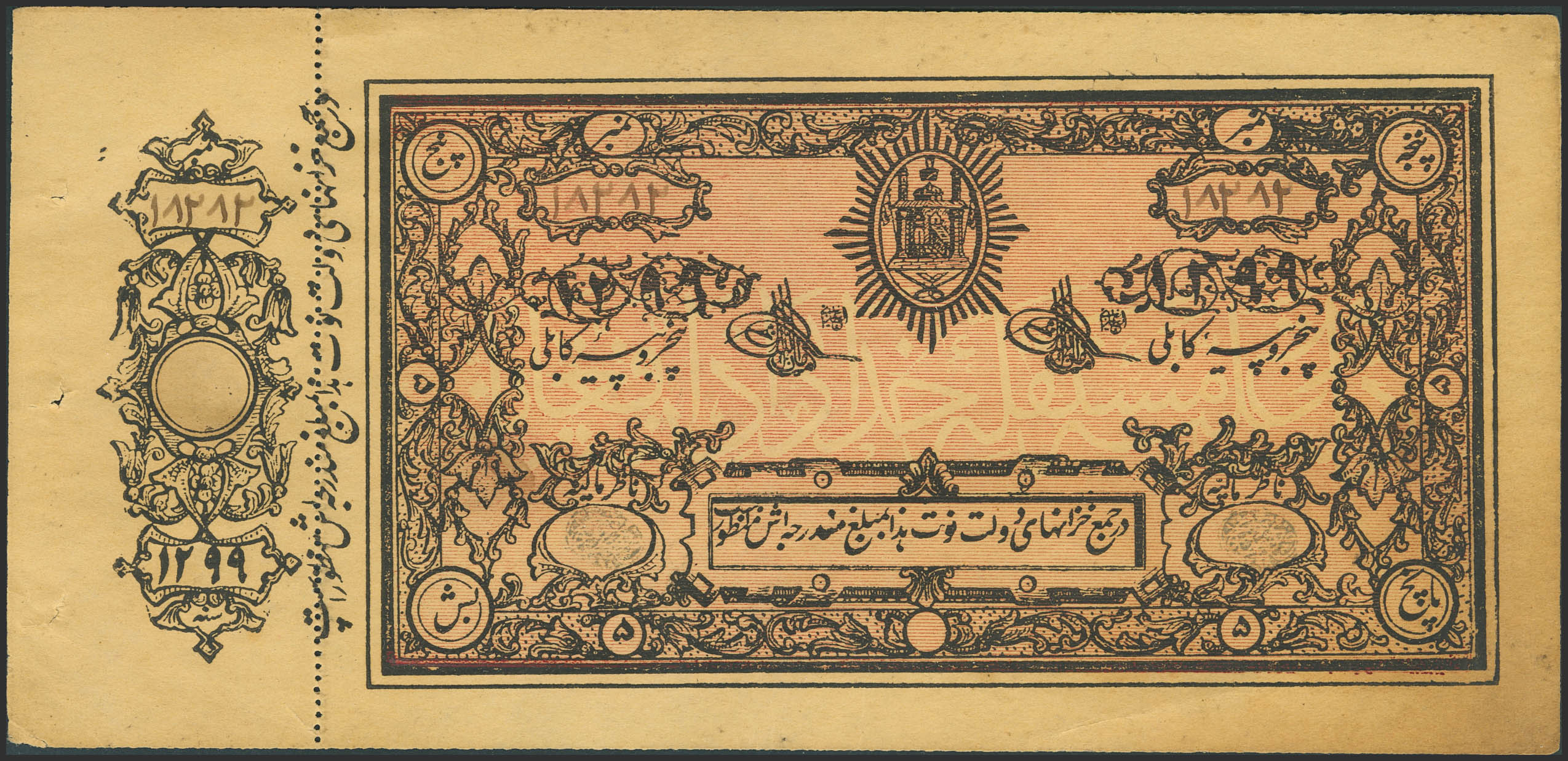 AFGHANISTAN. 5 Rupees. 1920. Treasury. (Pick: 2b). About Uncirculated.