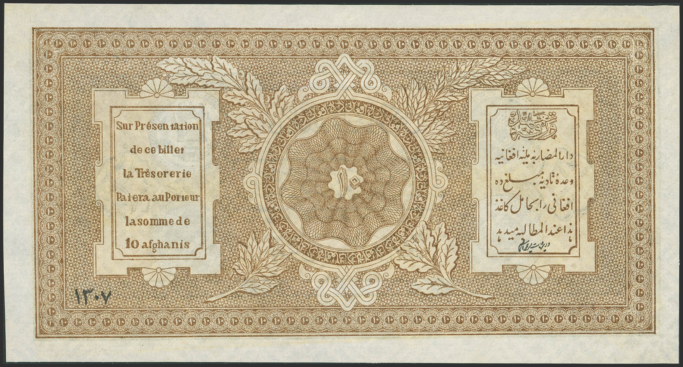 AFGHANISTAN. 10 Afghanis. 1928. Treasury. (Pick: 9b). Uncirculated.