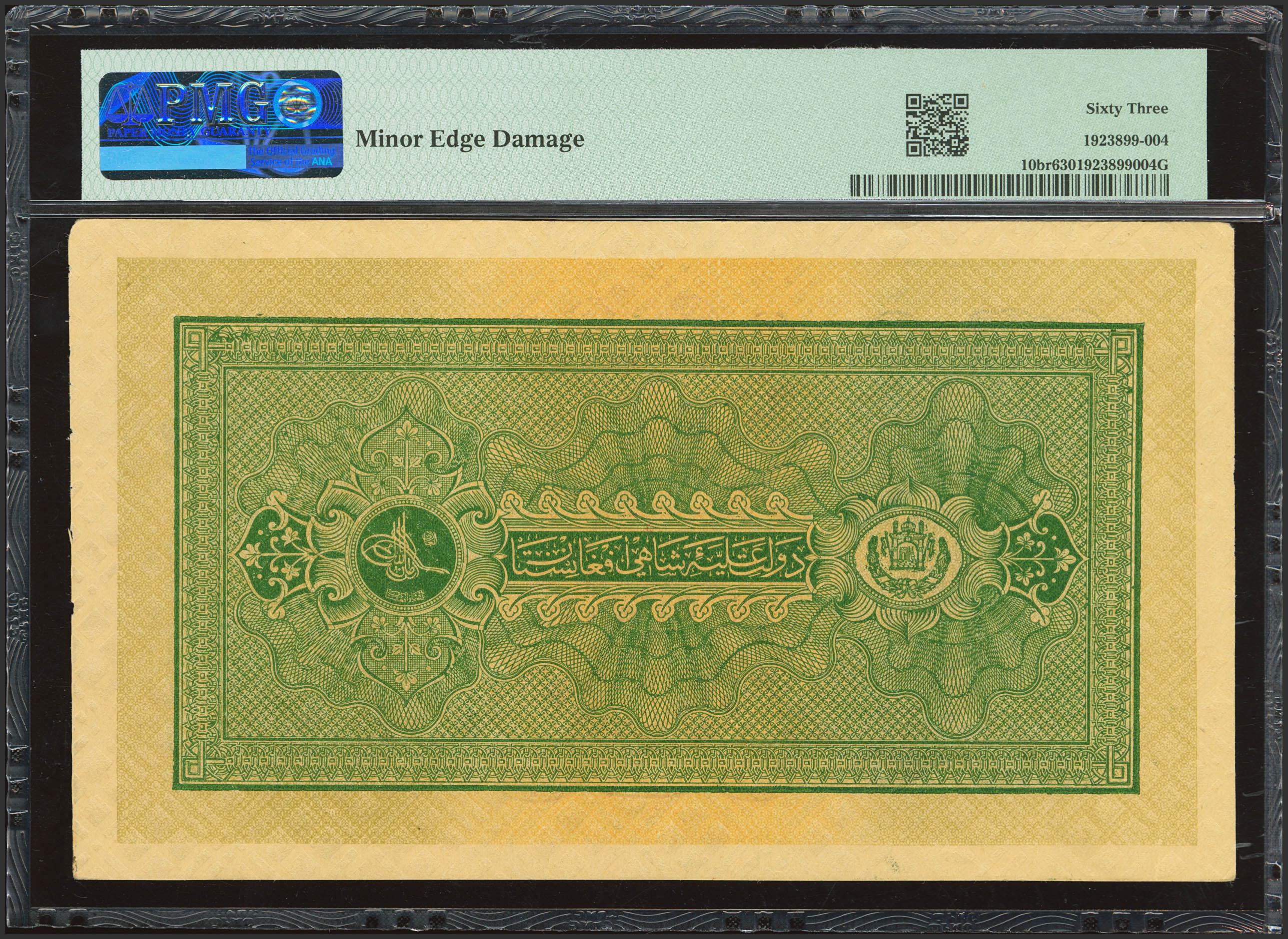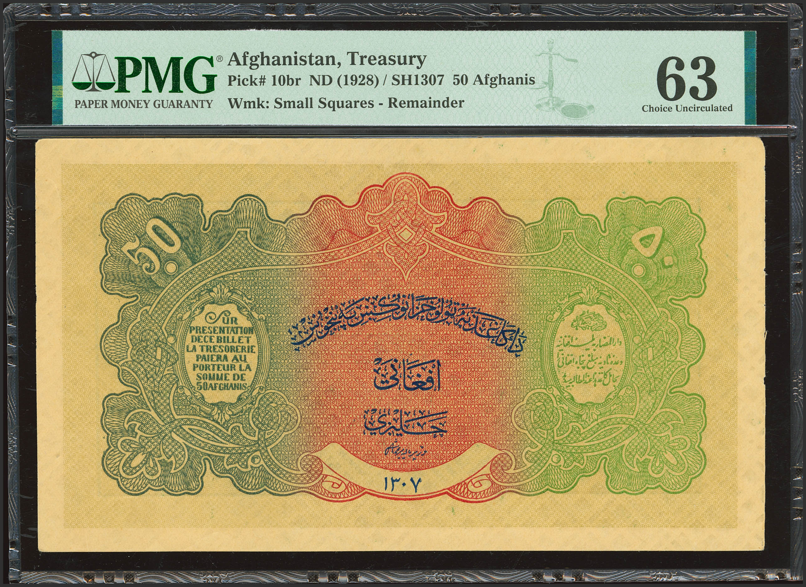 AFGHANISTAN. 50 Afghanis. 1928. Treasury. With watermark. (Pick: 10b). PMG63 (minor edge damage).