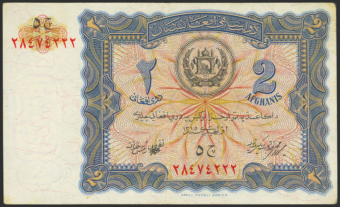 AFGHANISTAN. 2 Afghanis. 1936. Ministry of Finance. (Pick: 15). Almost Uncirculated.