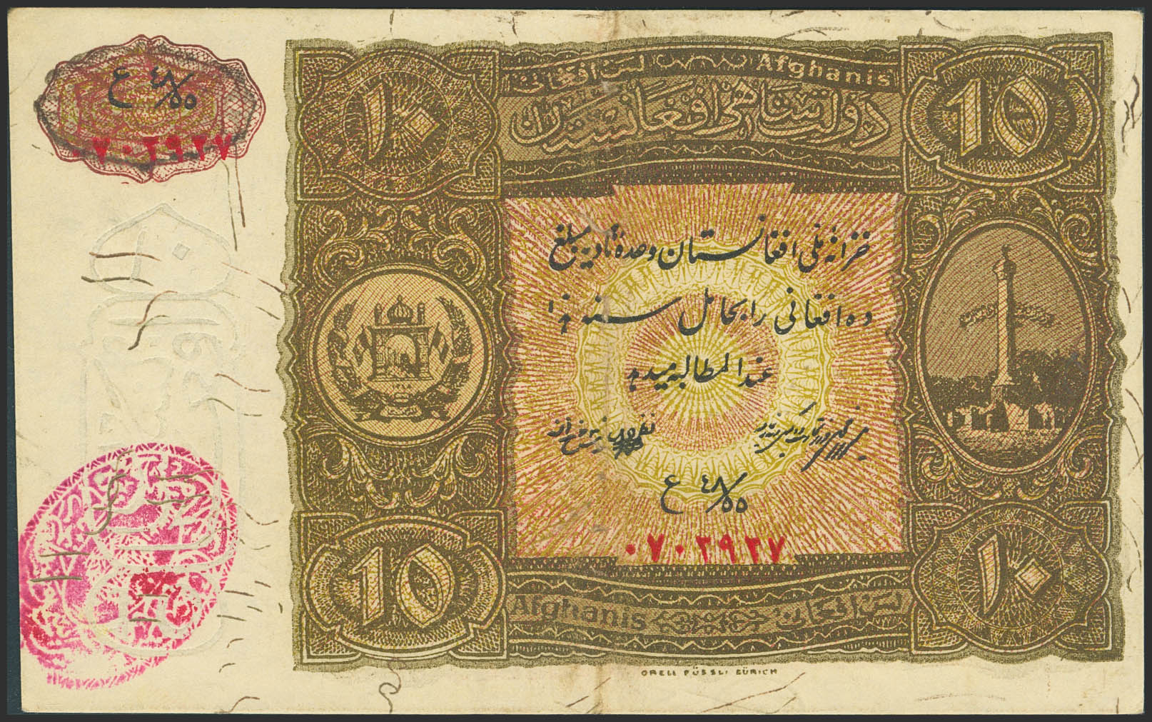 AFGHANISTAN. 10 Afghanis. No dated. Ministry of Finance. Counterfeit. (Pick: 17Ax). Almost Uncirculated.