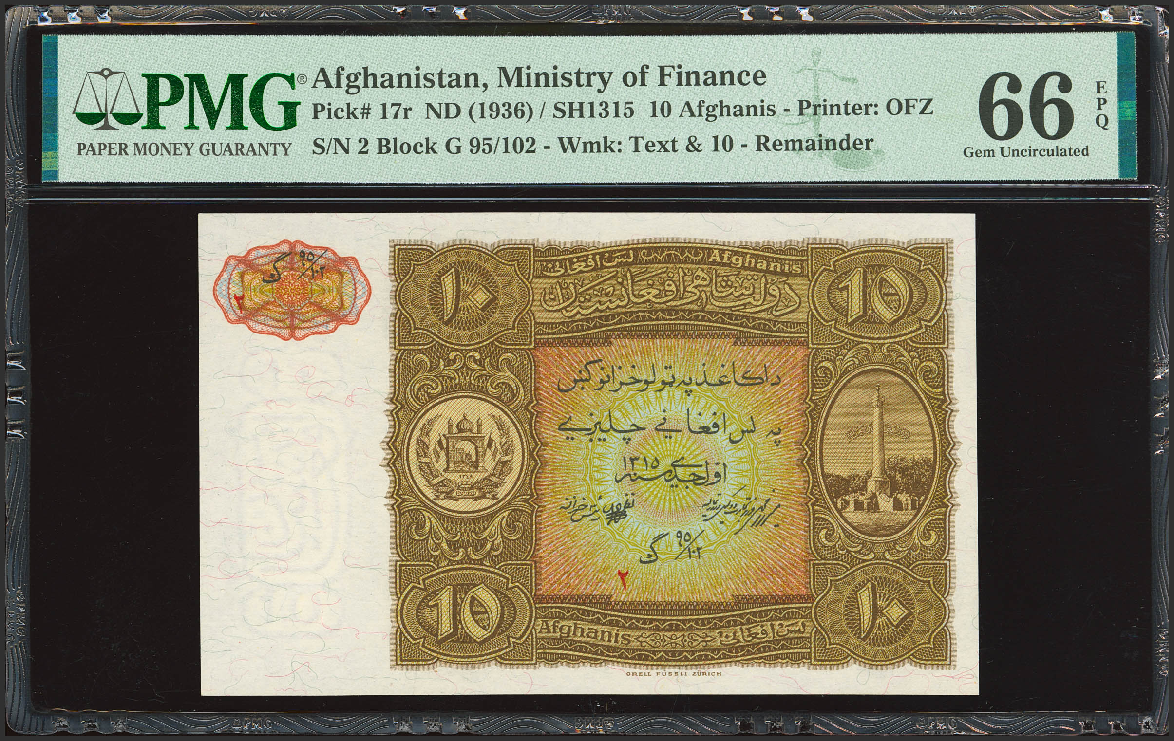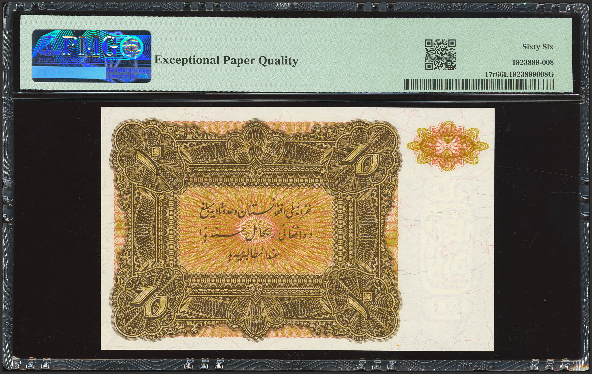 AFGHANISTAN. 10 Afghanis. 1936. Ministry of Finance. Remainder. (Pick: 17r). PMG66EPQ.