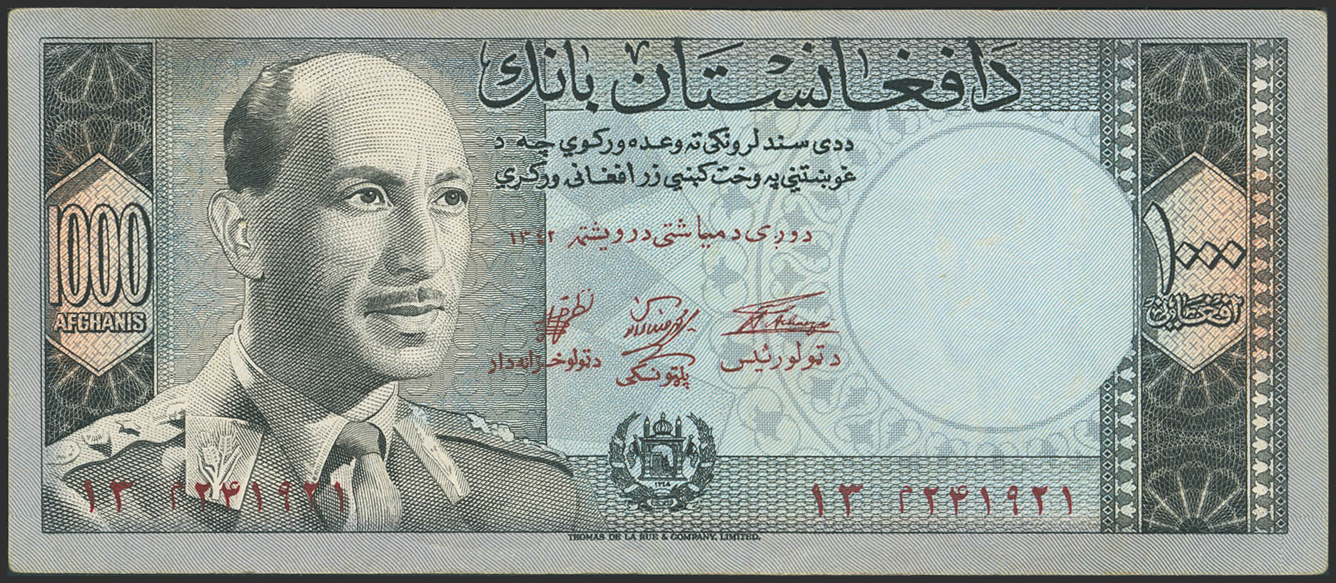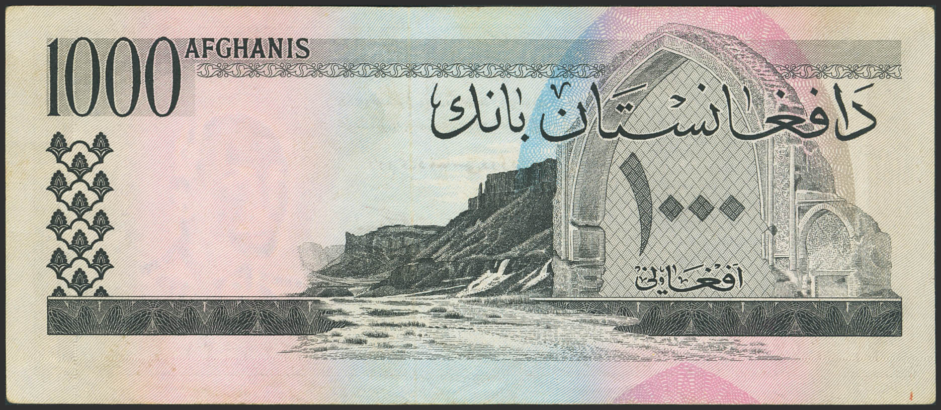 AFGHANISTAN. 1000 Afghanis. 1963. Da Afghanistan Bank. (Pick: 42b). Handling marks. Almost Uncirculated.